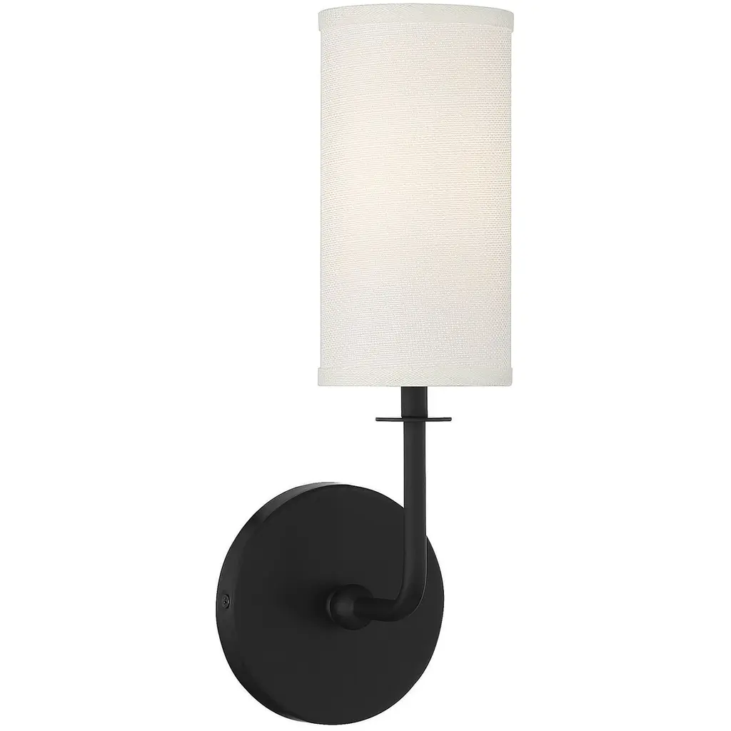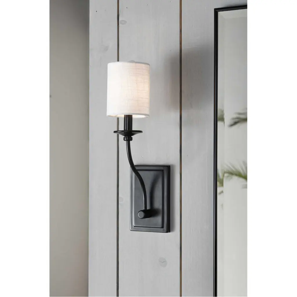 Inspired at its roots by an understated beauty and a breathtaking formal elegance, this wall sconce will make a stunning addition to any luxurious living space. A black arm flows down from an ornamental light base to a rectangular backplate. On top of the light base sits a summer linen shade.