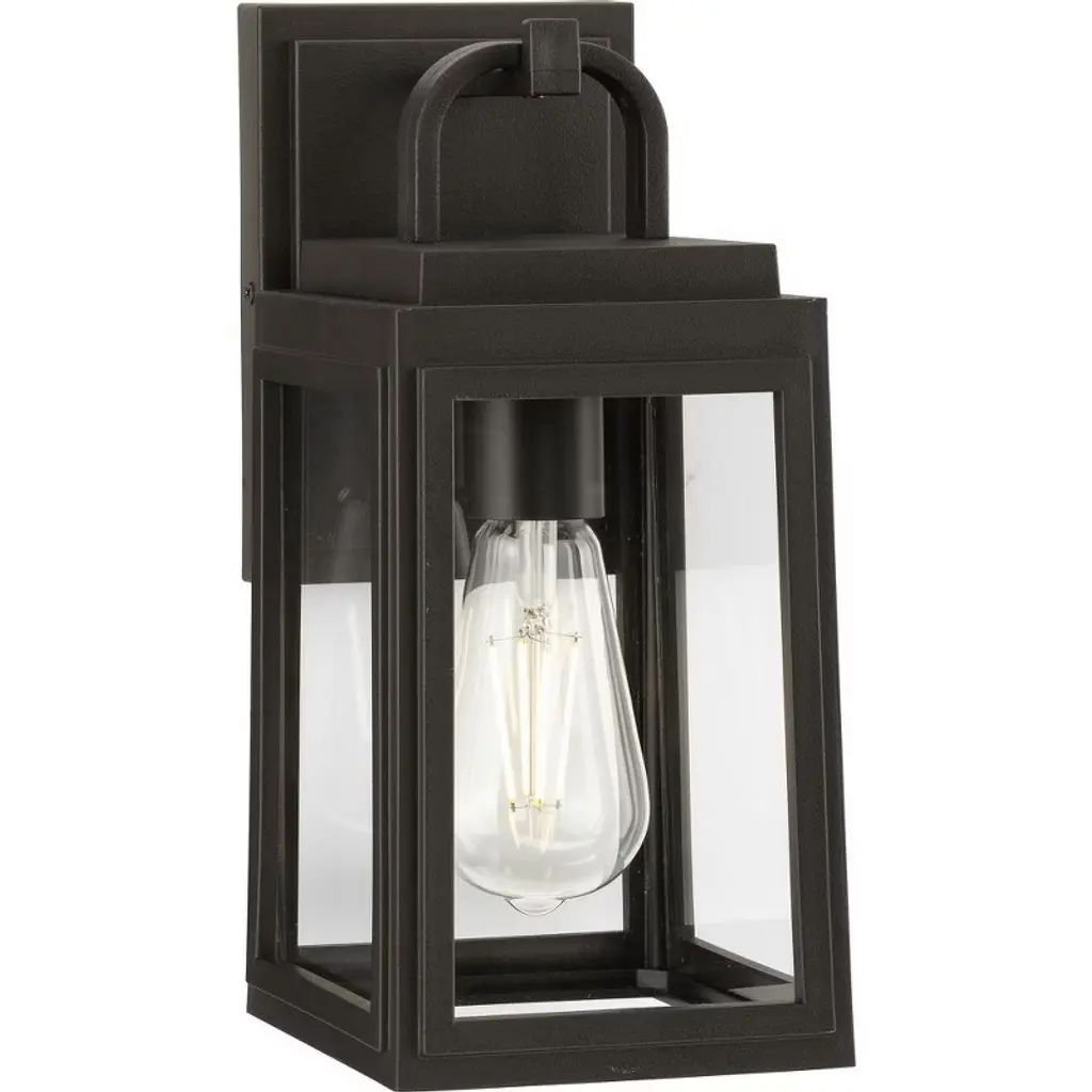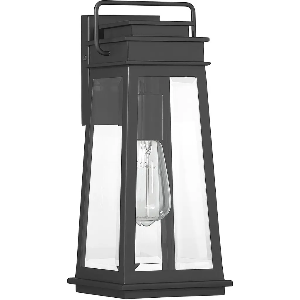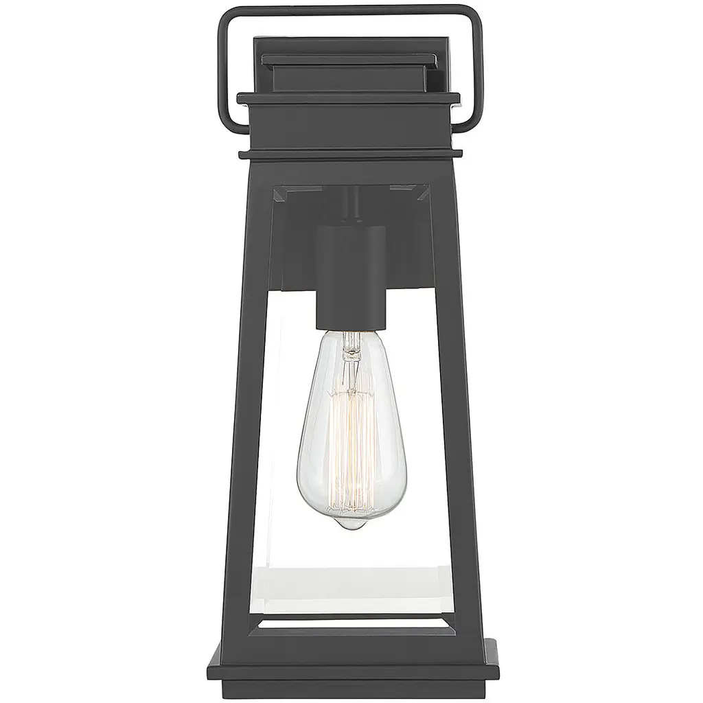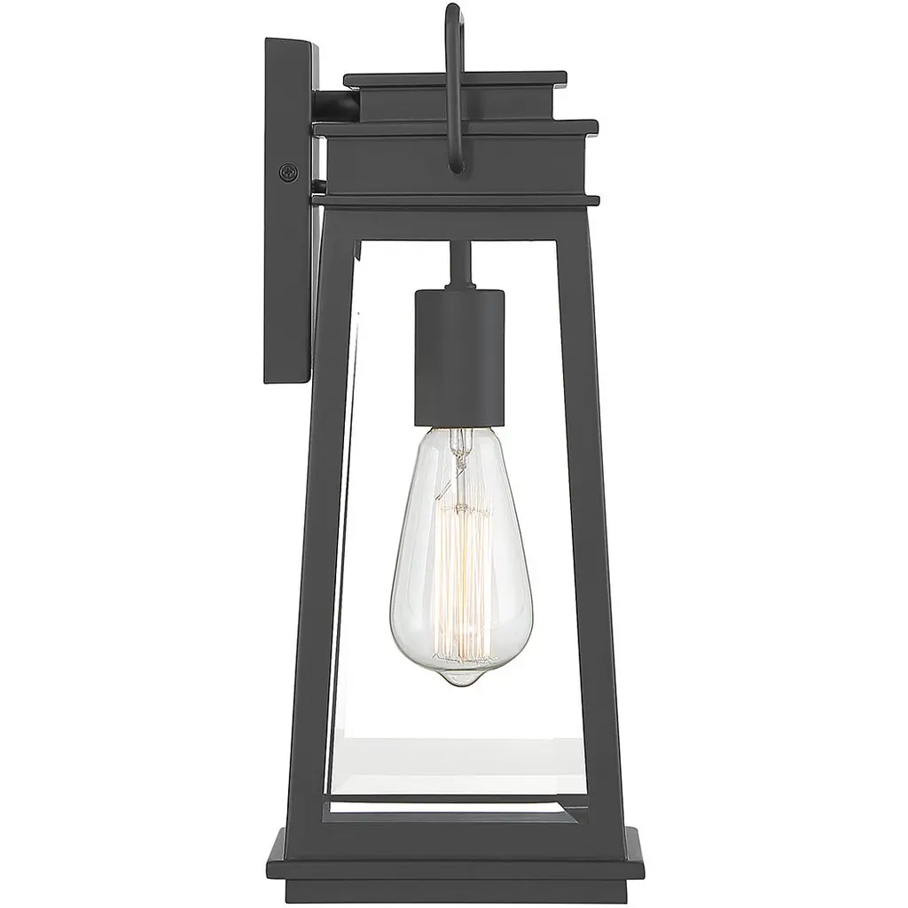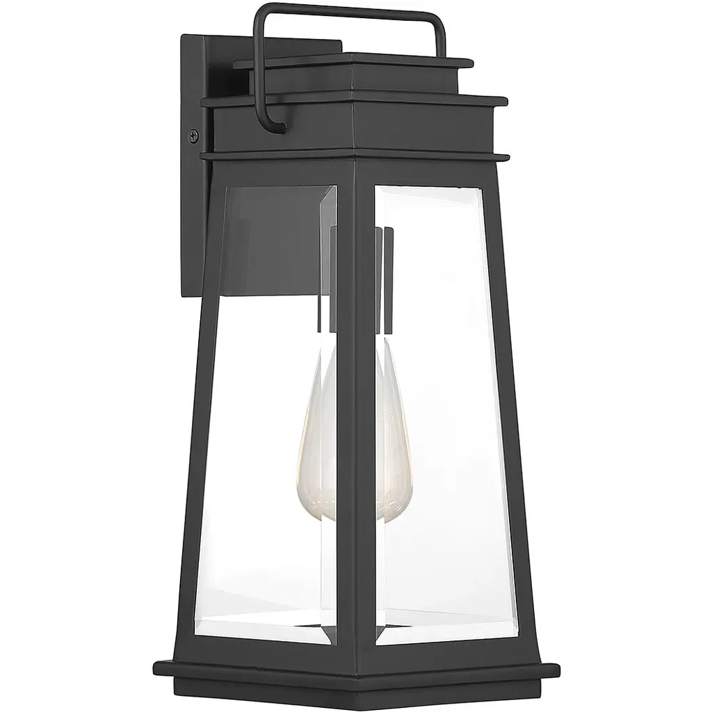 The Savoy House Boone 1-light outdoor wall light showcases a classic lantern-style lighting look with panes of clear beveled glass and a matte black finish that adds versatility. Boone is 15.25" in height, 6.25" in width and extends 6.5" from the wall. It uses 1 standard size bulb with a max of 60 watts (bulb not included).