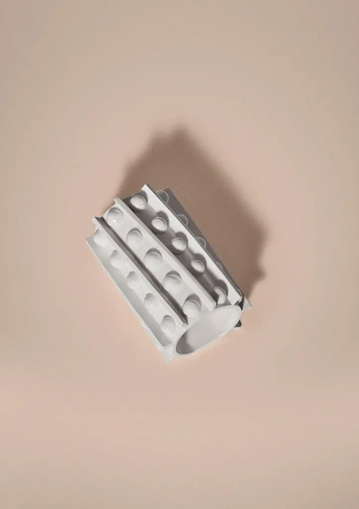 Glazed ceramic wall lamp with geometric relief made by the Jean Roger workshop in Paris. Available in green, yellow, blue, pink, brown, and matte white colors and in two sizes.Made in France.