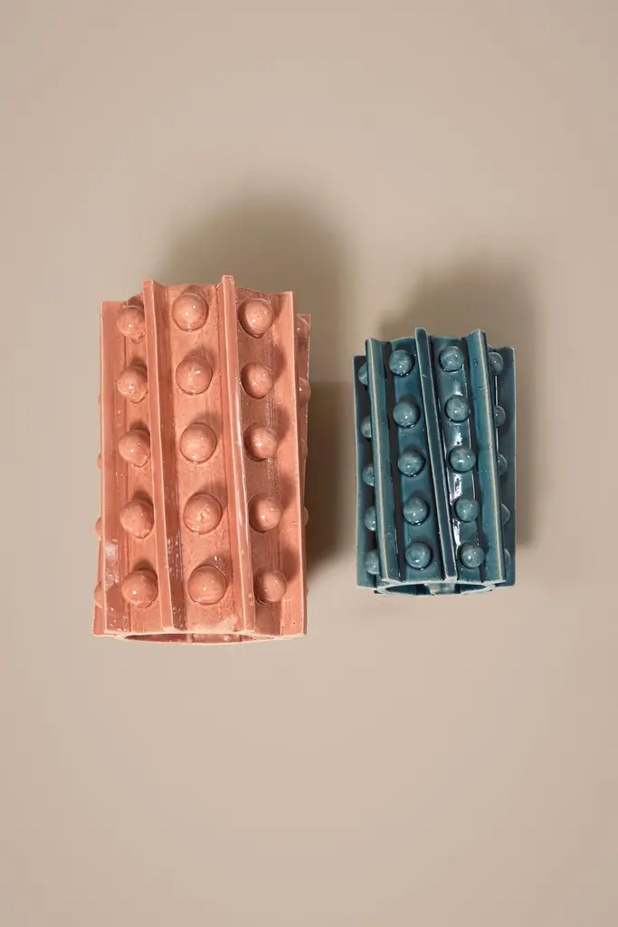 Glazed ceramic wall lamp with geometric relief made by the Jean Roger workshop in Paris. Available in green, yellow, blue, pink, brown, and matte white colors and in two sizes.
