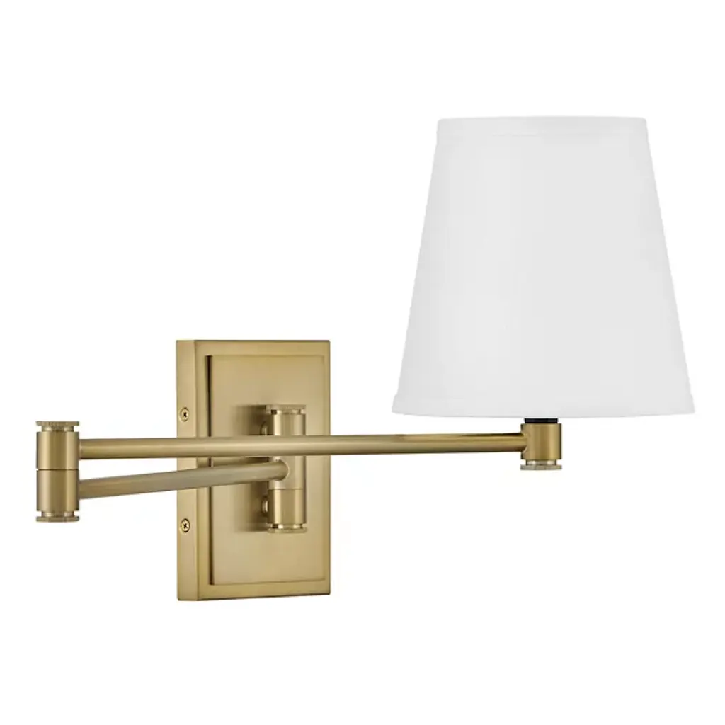 Traditional design meets modern function in the Boston Linen Swing Arm Sconce by Visual Comfort Signature, formerly known as Visual Comfort, The robust Linen shade and multi-jointed swing arm design allows you to maneuver a helpful combination of ambient and task lighting where it is most needed. Vintage industrial tropes including exposed hardware, decorative grooves, and balled joints, gives the piece a classic personality that all can enjoy.
