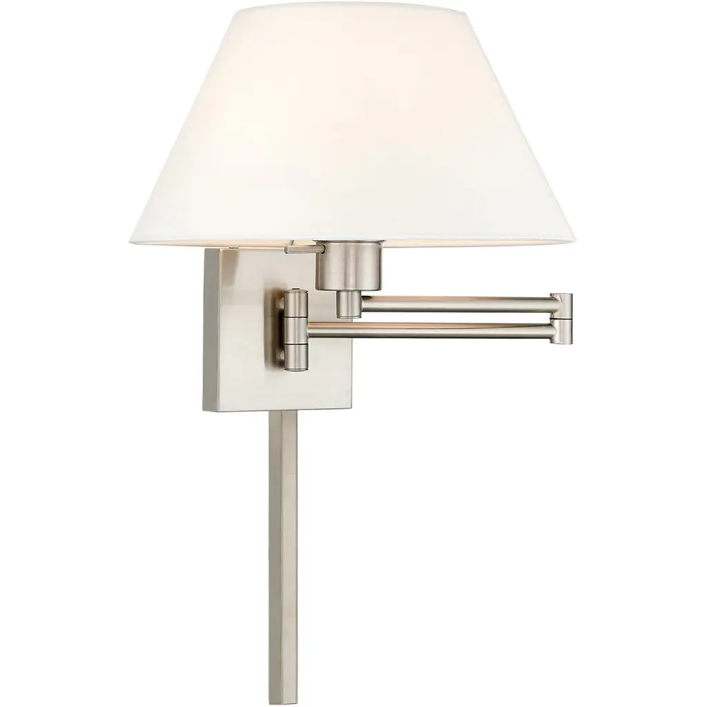 Traditional design meets modern function in the Boston Linen Swing Arm Sconce by Visual Comfort Signature, formerly known as Visual Comfort, The robust Linen shade and multi-jointed swing arm design allows you to maneuver a helpful combination of ambient and task lighting where it is most needed. Vintage industrial tropes including exposed hardware, decorative grooves, and balled joints, gives the piece a classic personality that all can enjoy.