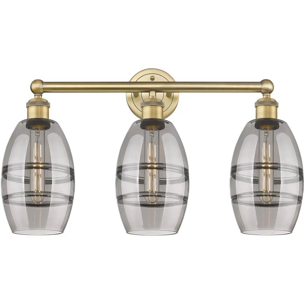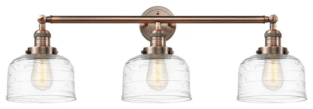 Bow 3 Light Bath Bar In Bronze Finish With 6" Clear Ribbed Glass