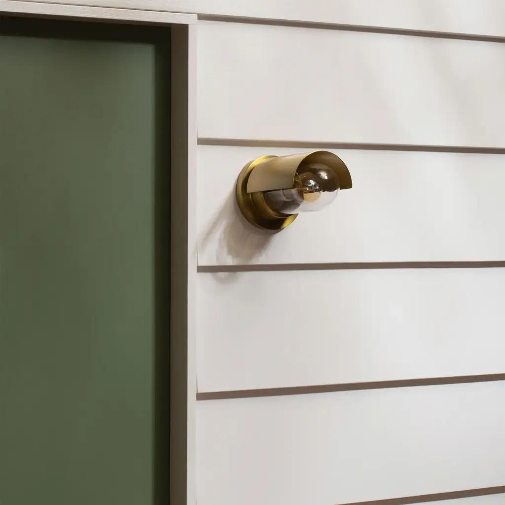 A minimal, modern solution for front entryways, outdoor walkways, porches, bathrooms, and kitchens, the Bower Sconce is designed to cast a soft, ambient glow while the metal shield creates a semi-directional downlight. Expertly suited for indoor and outdoor applications alike, this thoughtfully designed sconce features a glass shade that threads easily into place. Assembled in our Portland, Ore. factory using ethically-sourced domestic and global components. A Schoolhouse Original. Learn how to choose perfect wall sconce placement on our blog.