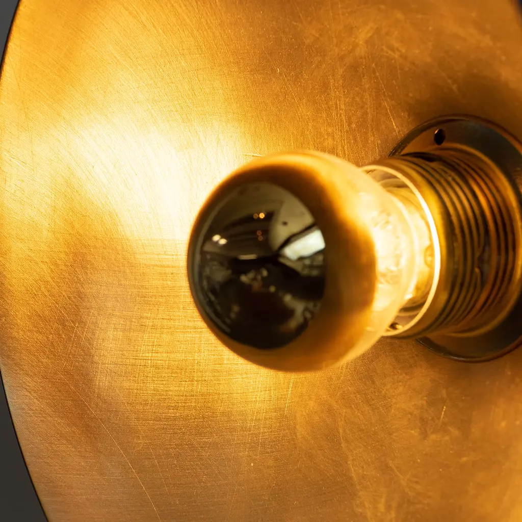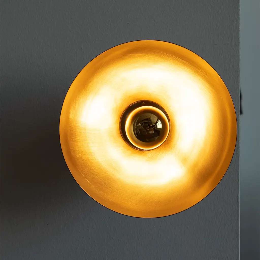 The Bowly wall lamp features a sleek, bowl-inspired silhouette blending understated elegance with modern contemporary style. Crafted in brass, the sconce offers a striking contrast between its matte black exterior and warm gold interior, designed to enhance ambient lighting effects. This medium-sized piece serves as an artful accent for living spaces, hallways, or bedrooms, sold individually with the option to complement with additional units for layered illumination.