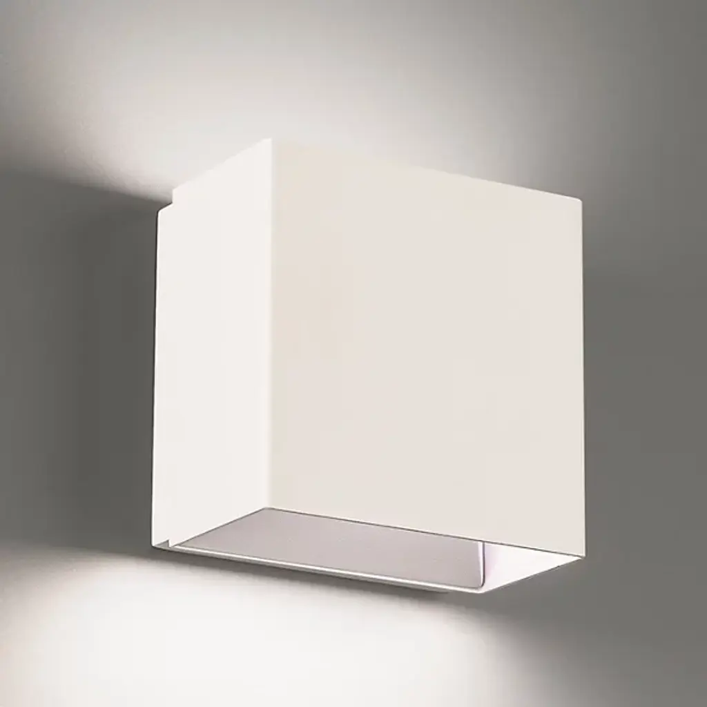 Add a stylish statement to your walls and hallways with the Boxi LED Wall Sconce from dweLED. A sleek and simple geometric structure, it starts with a simple square wall plate, sending out a boxy rectangular shade around integrated LED lamping. Each vertical end is left open as a light bay, casting an angular wall wash above and below that contrasts well with an angular set of shadows from the opaque sides.