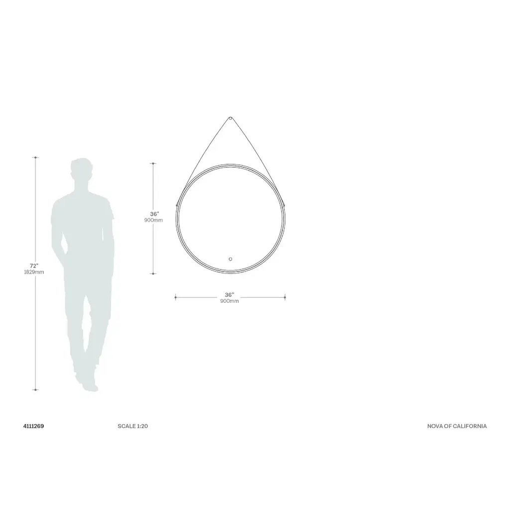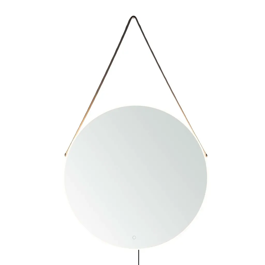 The Aurora Round Wall Mirror is a seamless fusion of simplicity and modernity that enhances any space with effortless elegance. Suspended from a minimalist leather strap, the mirror's clean, contemporary design is accentuated by a captivating ring of LED light. Adjustable via a dimmer switch, the LED light allows you to create the perfect ambiance for any occasion. At 36" in diameter, the Aurora makes a grand statement, serving as a stunning focal point above sofas, sectionals, or anywhere in need of a striking visual impact.