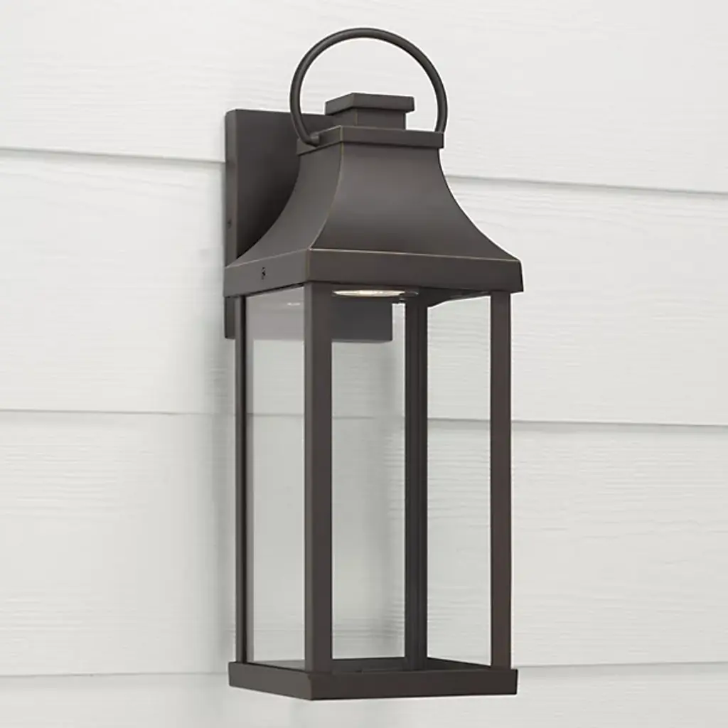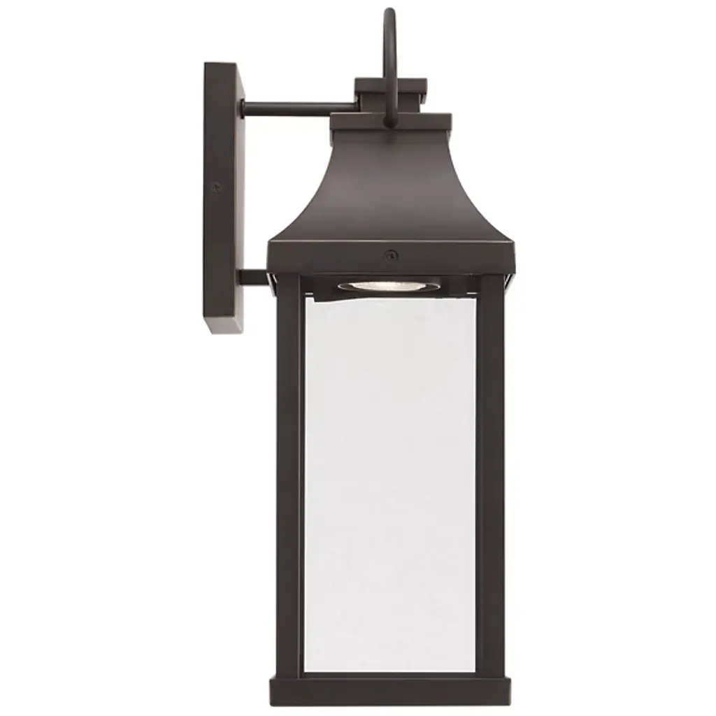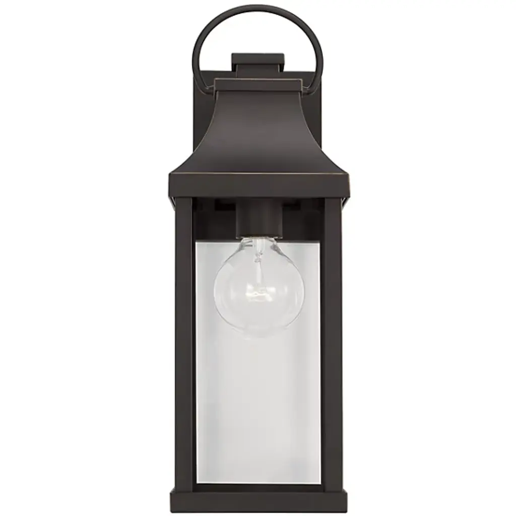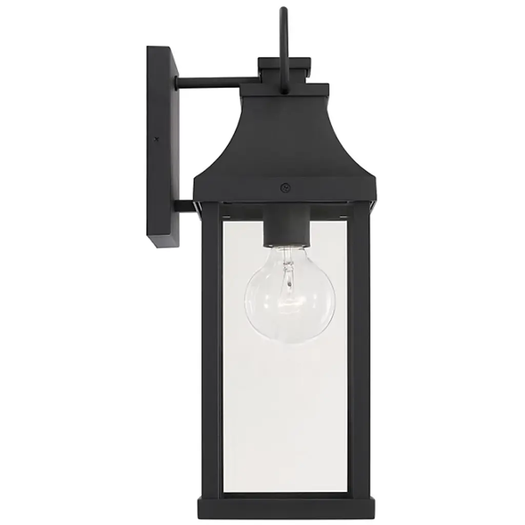 The Bradford Outdoor Single Wall Sconce by Capital Lighting brings light to your outdoor spaces. A frame of metal takes on a prism shape that is lined with lovely glass panes. The sconce’s metalwork forms a sloping crown topped with a ring that draws your gaze. Brilliant light emanates from within the sconce so that your friends and family can navigate your property with ease during your next gathering. This wall-mounted is made available in both LED and Incandescent lighting options.