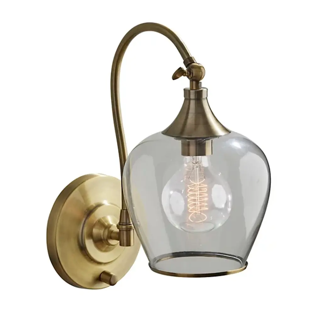 Elegant, whimsical, stylish. The Bradford Wall Sconce from Adesso charms as a beautiful flower bursting with light. The sconce’s compact backplate makes every wall a great candidate for an eye-catching element. The sconce leans forward with a slender stem underlined by its mesmerizing curve. Between the stem and the shade, a classic joint helps you direct the light for a tailored feel. The light shines as it glazes the tulip-like glass shade. A cast glow on the wall behind enhances the intimate feel of the piece.