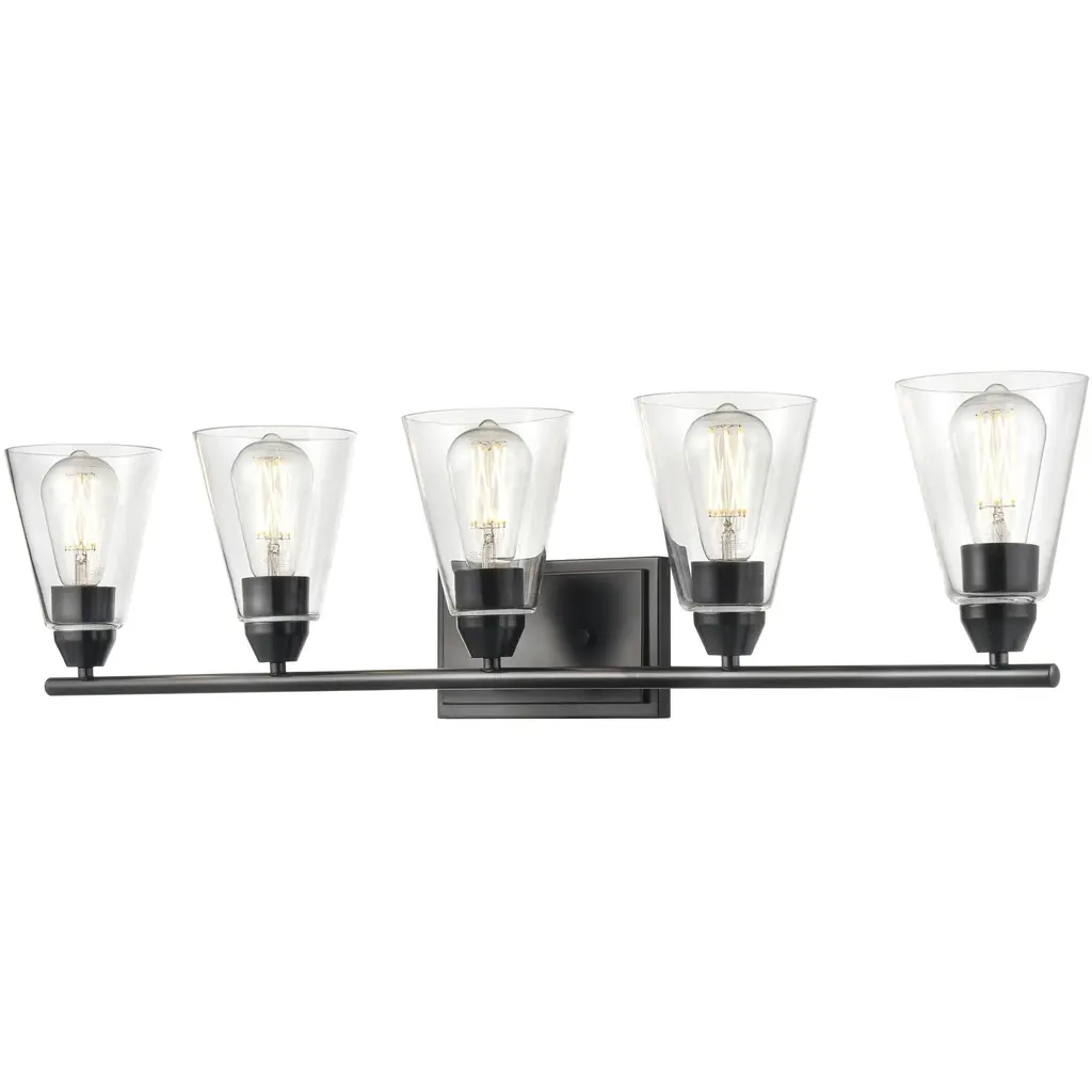 The Braelyn 34.25in. 4 light vanity light features an Olde Bronze finish and clear seeded glass shades. The Braelyn offers a vintage industrial design that works well with rustic, country and lodge decor.