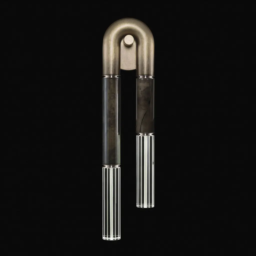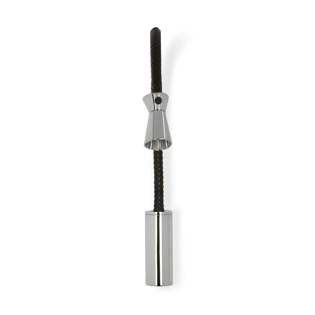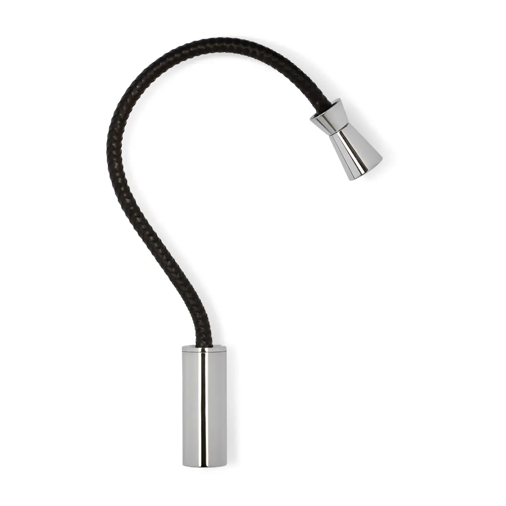 Introducing the Braided Leather Wall Lamp by Contardi G+T. This portable and luxurious reading lamp is perfect for yachts, historic buildings, and exclusive boutique stores. The head resembles a cocktail jigger, while the brass arm is encased in braided leather. Add a touch of elegance and functionality to your space with this innovative lamp.