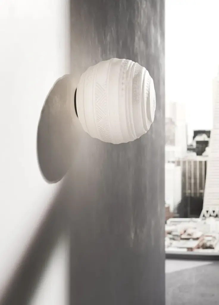 PL144 1B INTceiling lamp/wall lampmax 1x52W, E14PL144 2B INTceiling lamp/wall lampmax 1x105W, E27A different “creative adventure” where inspiration doesn’t come from a place or an object of the past, but from a value... friendship, the one that has been created over the years between the designer Matteo Ugolini and the Karman’s founder Davide Diamantini. Marks of tribalism impressed in a noble material, the glass, in a sphere, which needs to be simple but complex, fun but pure... as friendship.