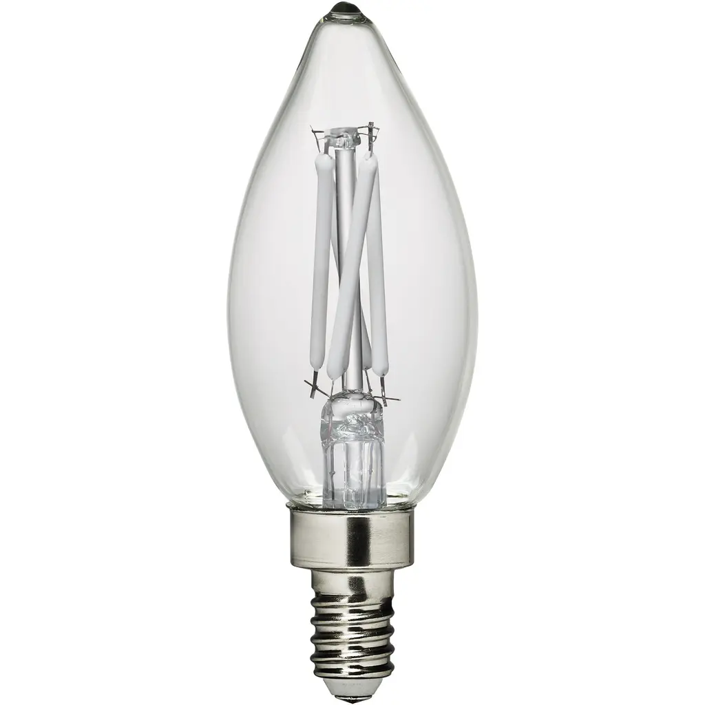 The Visual Comfort E12 C11 Clear 4W LED branded bulb, delivers a beautiful 3000K warm white glow with 350 lumens of brightness. Designed for efficiency and longevity, this energy-saving LED is a perfect replacement for traditional incandescent bulbs. Ideal for chandeliers, sconces, and decorative fixtures, its clear glass provides crisp, radiant illumination while maintaining a classic aesthetic.