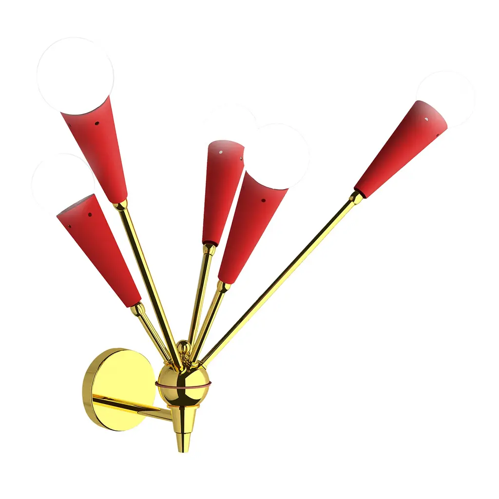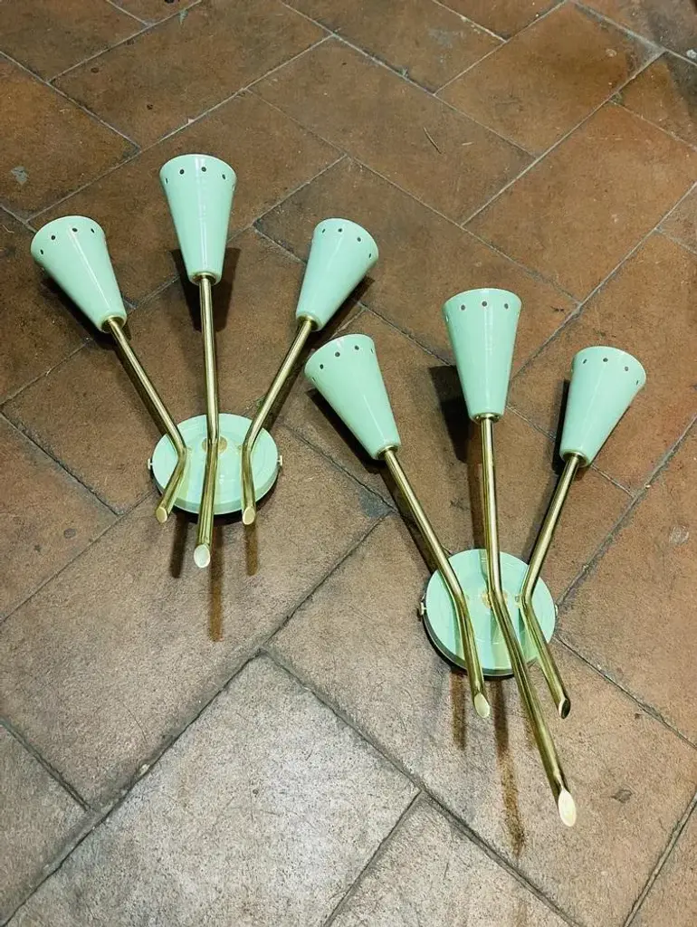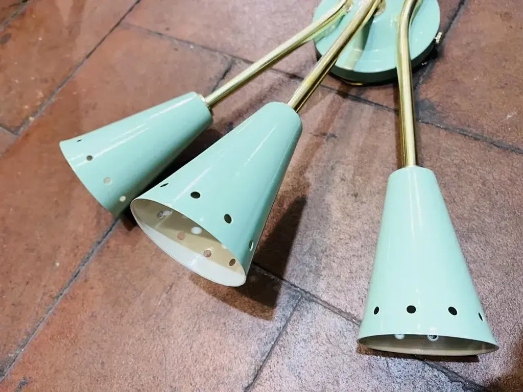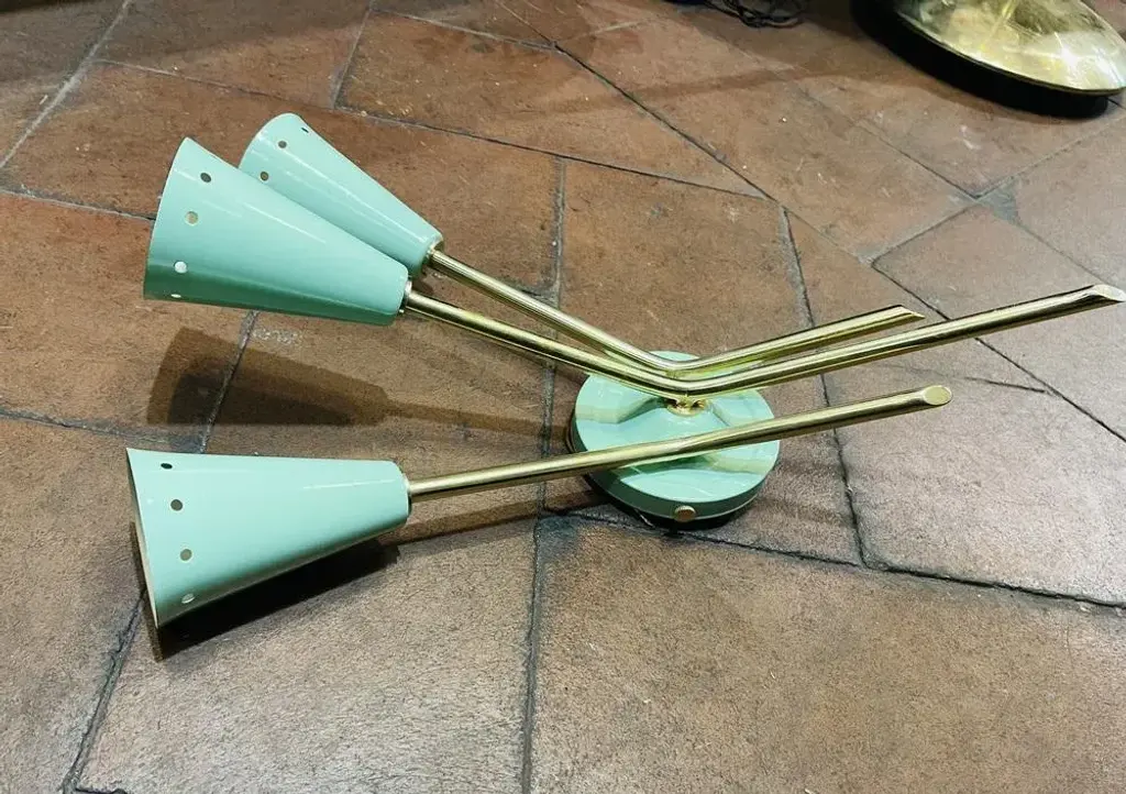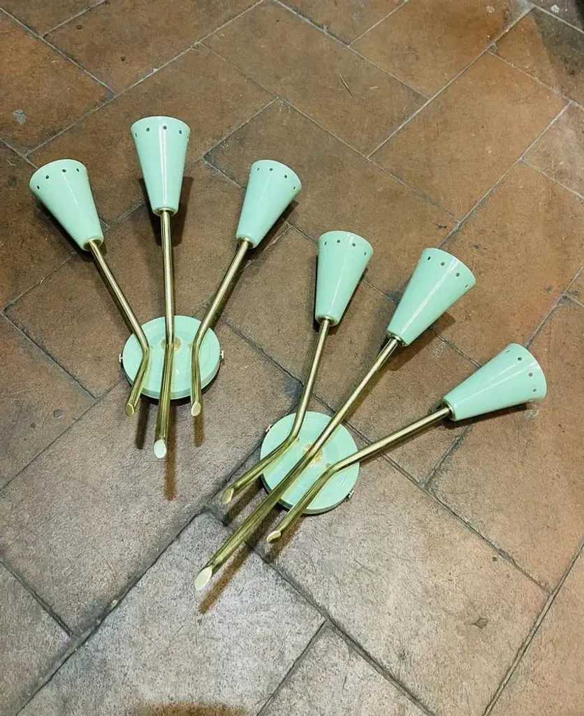 50s brass and aluminum applique, each cone contains a light point European Plug (up to 250V).The wiring of this item may be original and might need replacement, if not specified otherwise.