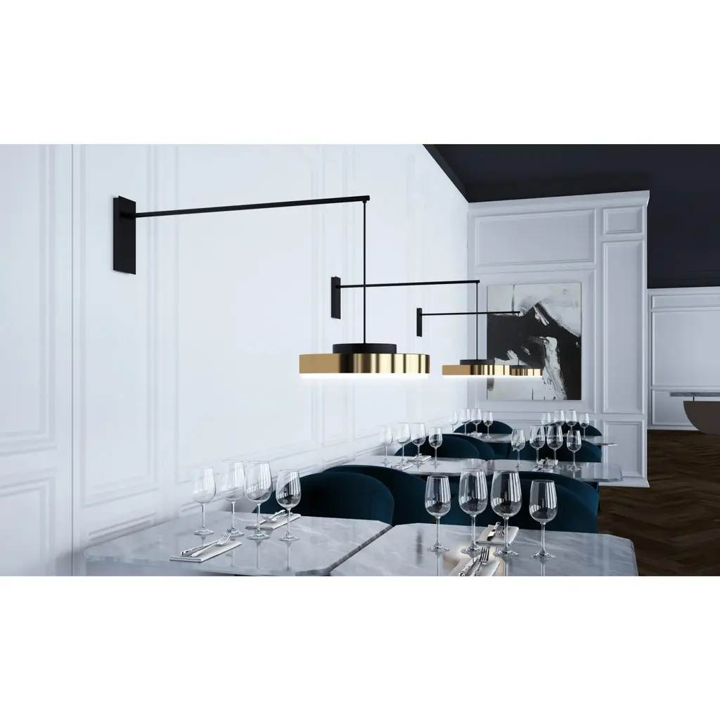 Introducing the Brass Framed Wall Lamp from Contardi Discus, a minimalist and luxurious addition to any space. With its dynamic graphic line, this lamp frames the room in a contemporary and evocative way. The interlocking metal discs come in white or black with a stunning semi-polished brass band, while the 120° rotating arm ensures even light distribution. Choose from suspension, applique, or ceiling variants for a truly versatile and sophisticated lighting solution.