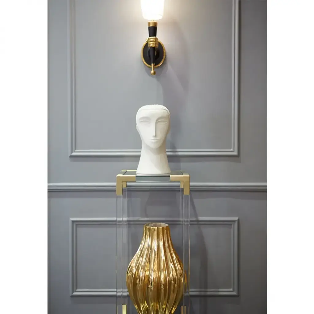Daring Deco.Surrender to the surreal. Available in left or right hands, each sconce is sand cast in brass with blackened accents. The inverted shade completes the torch-like effect. Fab in a dining room or ultra-intriguing in a foyer.All lighting sales are final.
