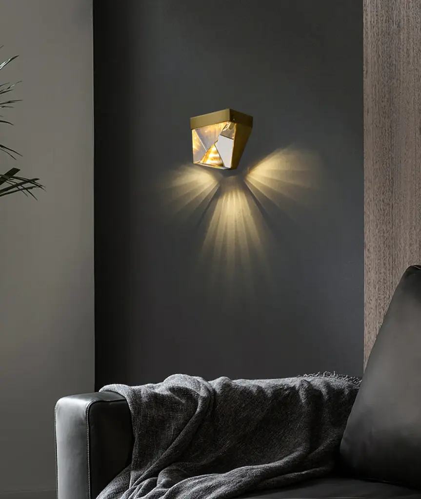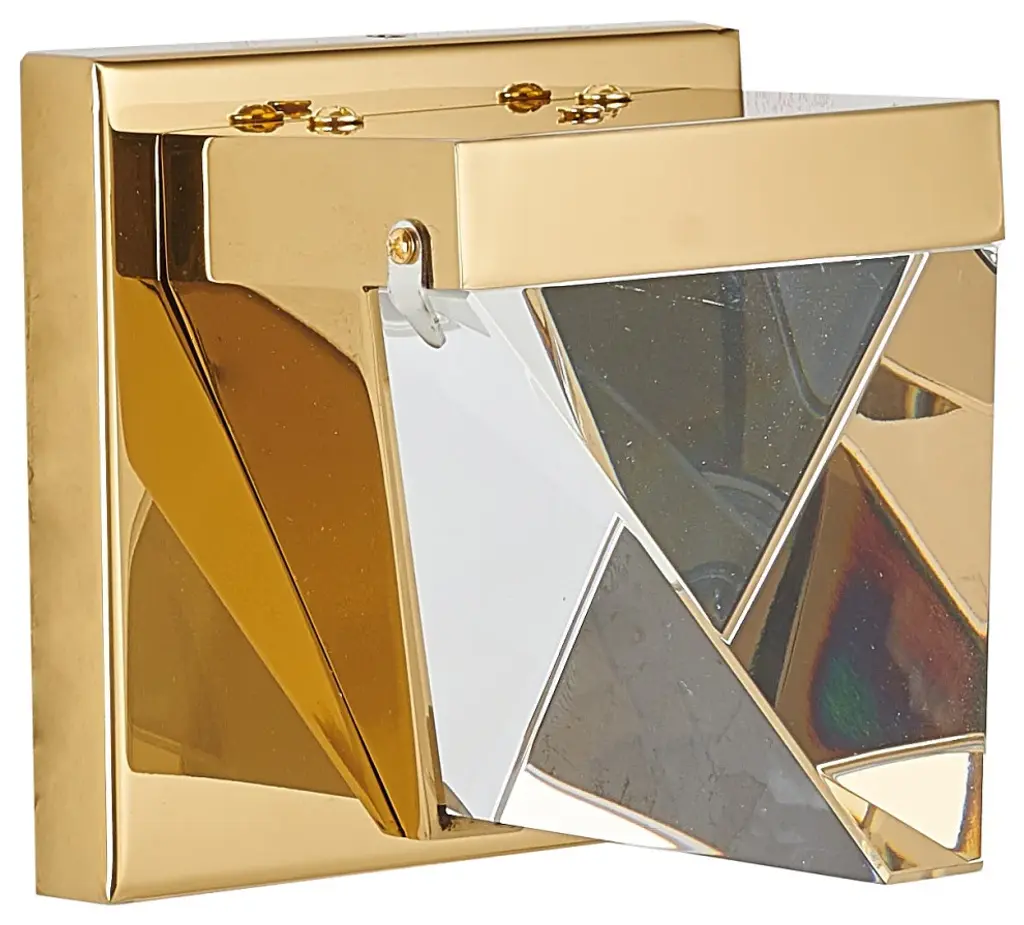 Brass Iron Led Wall Sconce With A Clear Triangular Crystal