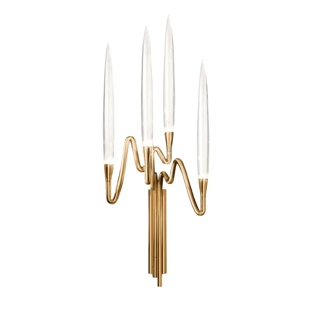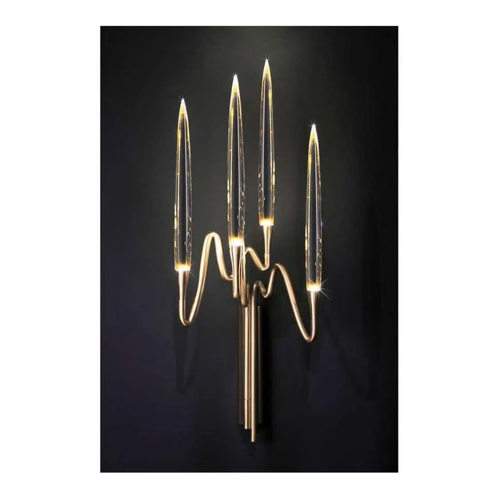 Scroll down and click "view all from Seller" to see more than 500 other unique products.Inspired by Arabic calligraphic art and the icon of the classical candelabrum, this wall sconce, is made with a hand-forged brass structure and 4 elegant “candles” crafted from solid crystal.The candles are illuminated using the latest LED technology, creating a sophisticated and romantic light.Each lamp is numbered and hides its own identity stamp that seals and guarantees the authenticity and uniqueness.Light source: LED light – 320 lumens eachMade in Italy:Made in Italy furniture means design, quality, style and sophistication.The typical elegance of Italian design can be found in this piece. No wonder that the world famous designers like Philippe Starck, Karim Rashid, Piero Lissoni, Rodolfo Dordoni and many others put their signature next to Made in Italy.
