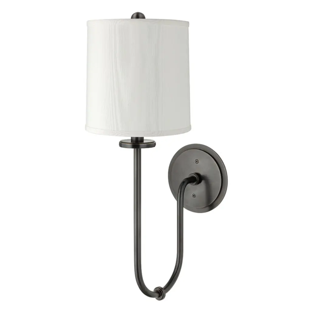 Bring home the Brayden Wall Sconce by Alder & Ore, a modern-minimalist fixture that’s great when mounted on walls and halls alike! A stepped-disc wall mount extends a curving arm down and then up before ending in a single socket tucked under a flared shade of fabric. This design shines an unrestricted spot of light up through the shade’s top and down below, softening the direct glare from the sides with its screening surface.