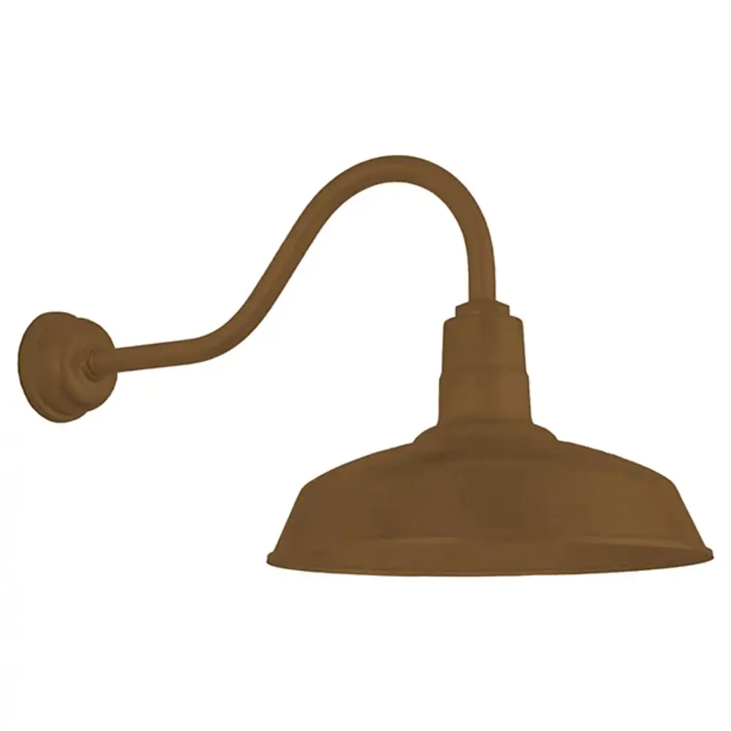 The Brea Outdoor Gooseneck Wall Sconce by Alder & Ore brings a classic, vintage look to spaces with this design inspired by 1920’s industrial lighting. Supported by a graceful gooseneck from a round wall plate, this sconce features a heavy-duty, spun aluminum shade with a tapered, stepped look that focuses a layer of light down onto surroundings, bringing a bright touch to outdoor areas needing to be illuminated at night. An interior finish provides plenty of light output, and a polyester powder coated exterior finish helps this design retain its color and resist scratching so it handsomely complements its environment for years to come.