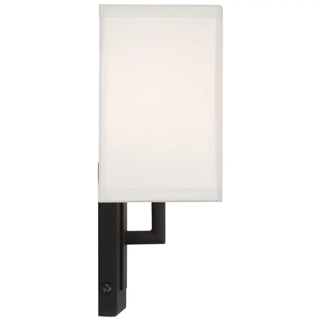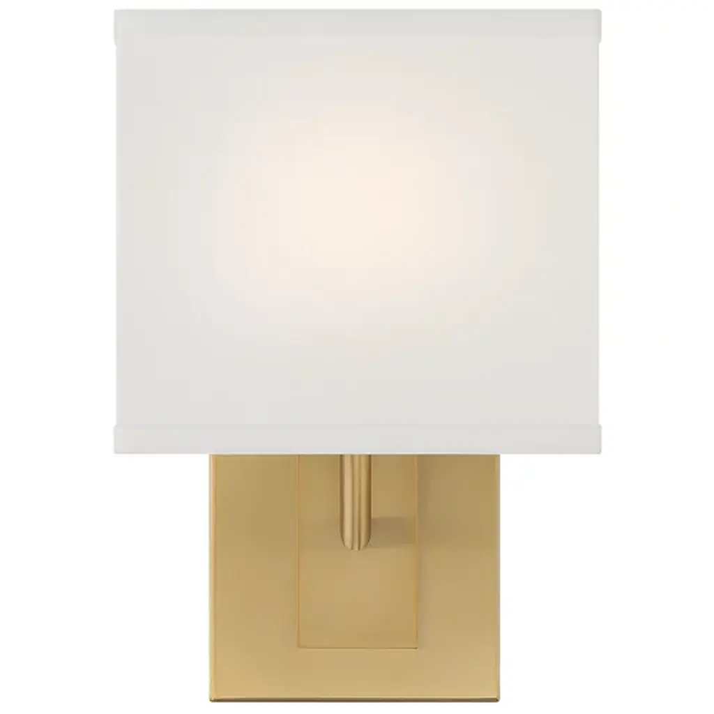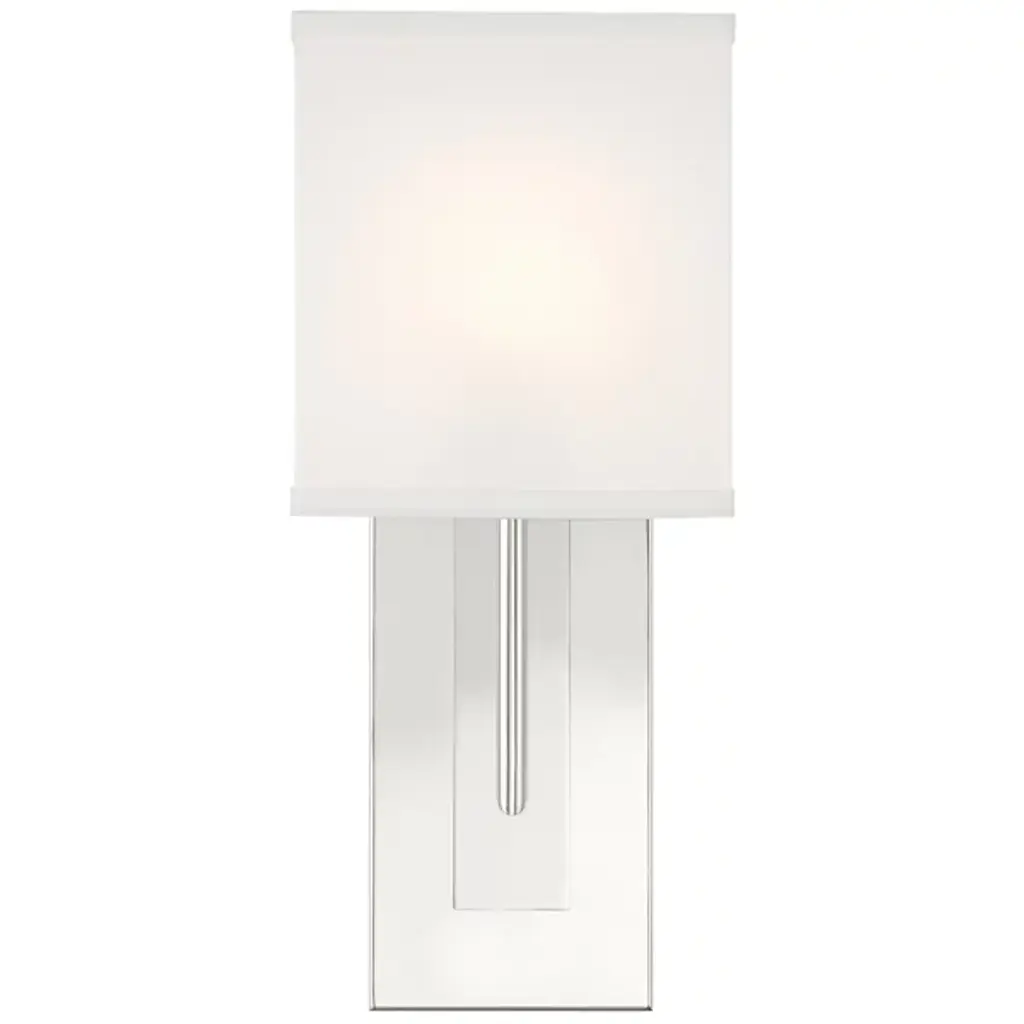 The Brent Wall Sconce by Crystorama is a cool and contemporary addition to spaces. Topped with a crisp, rectangular, silk shade, this wall sconce features a simply structured body that is dressed up with a bold mix of finishes. With clean lines, a single-arm is anchored by a sleek, layered, rectangular wall plate for a minimalistic look that mixes and matches with a range of décor and design styles to bring rooms a bright touch.