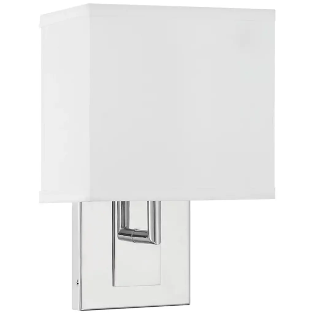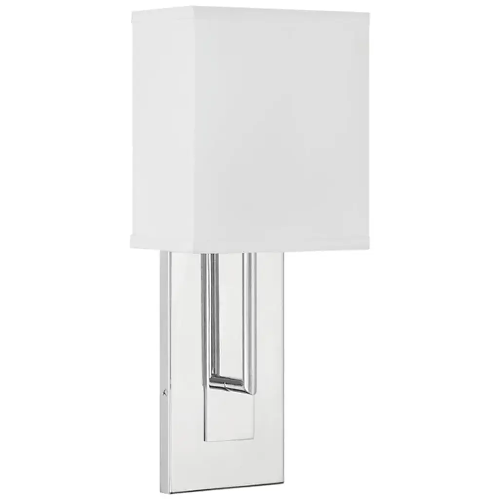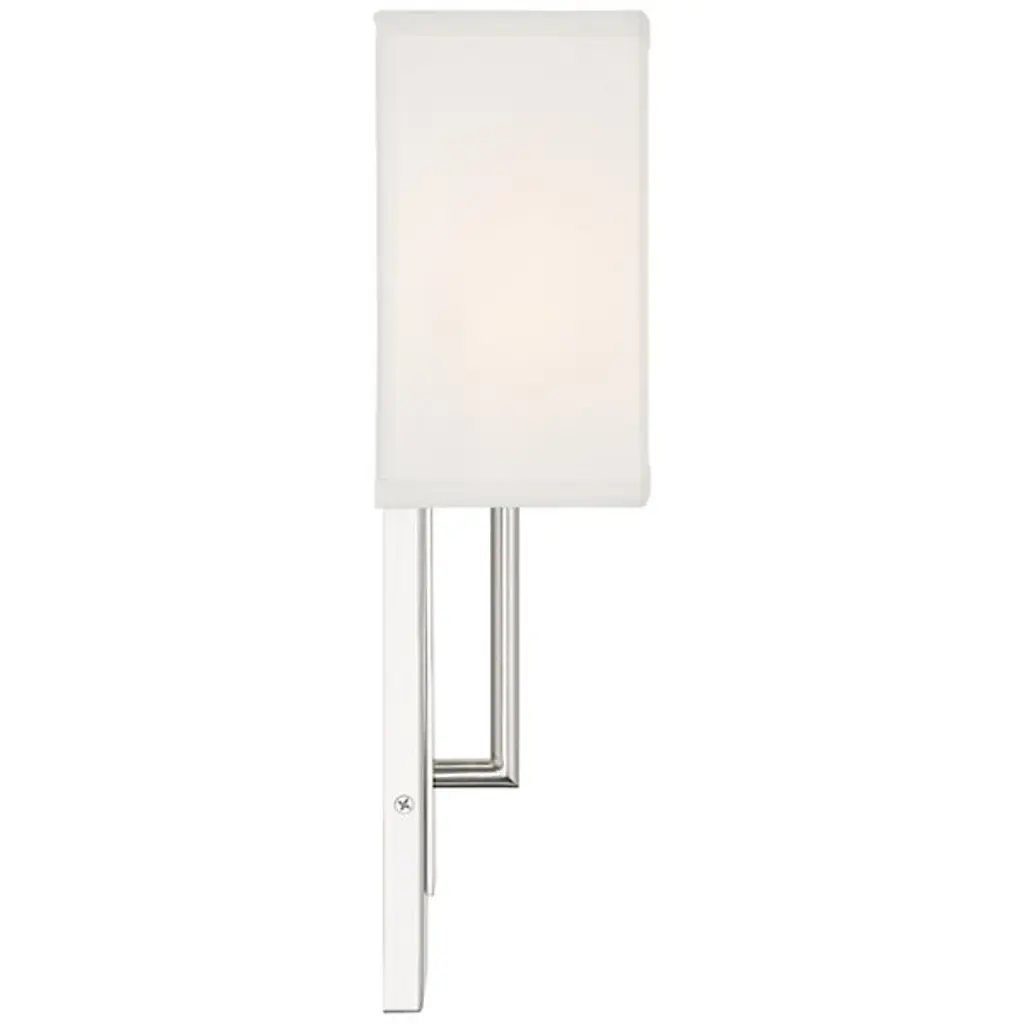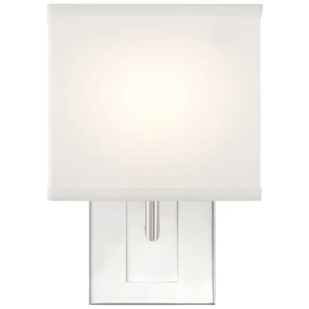 The Brent Wall Sconce by Crystorama is a cool and contemporary addition to spaces. Topped with a crisp, rectangular, silk shade, this wall sconce features a simply structured body that is dressed up with a bold mix of finishes. With clean lines, a single-arm is anchored by a sleek, layered, rectangular wall plate for a minimalistic look that mixes and matches with a range of décor and design styles to bring rooms a bright touch.