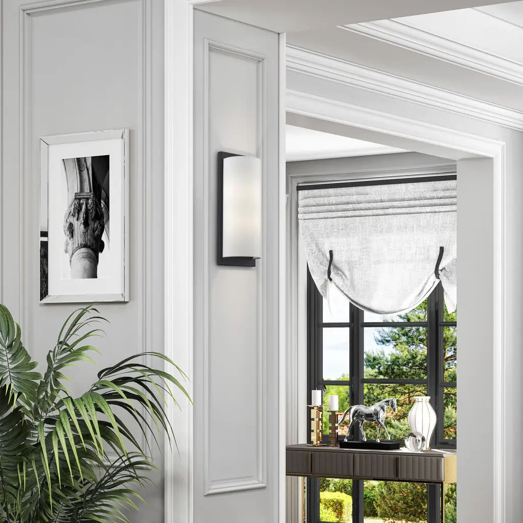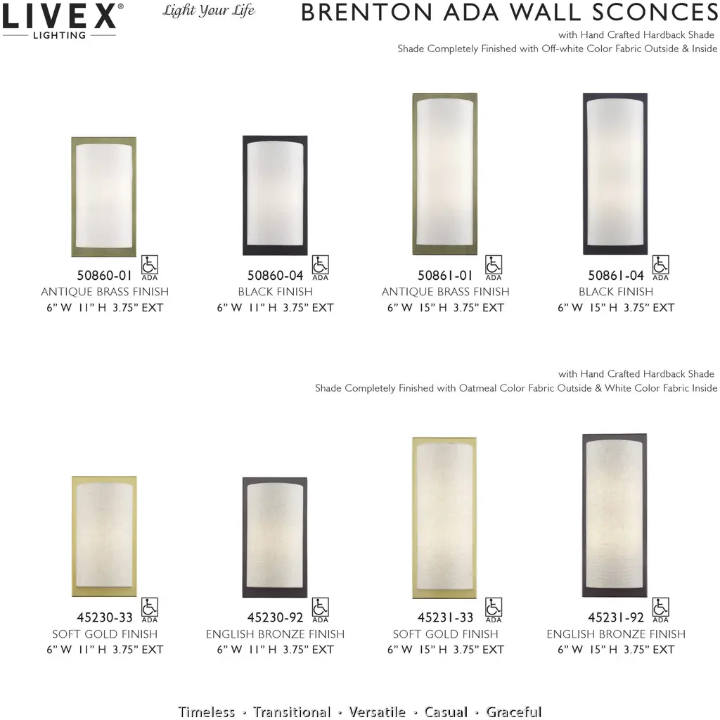 The timeless, transitional style Brenton ADA wall sconce is great for any style of decor. A hand crafted off white fabric hardback shade is paired handsomely with a black finish, so you can give your home warm, even illumination. Perfect for entryways, ha