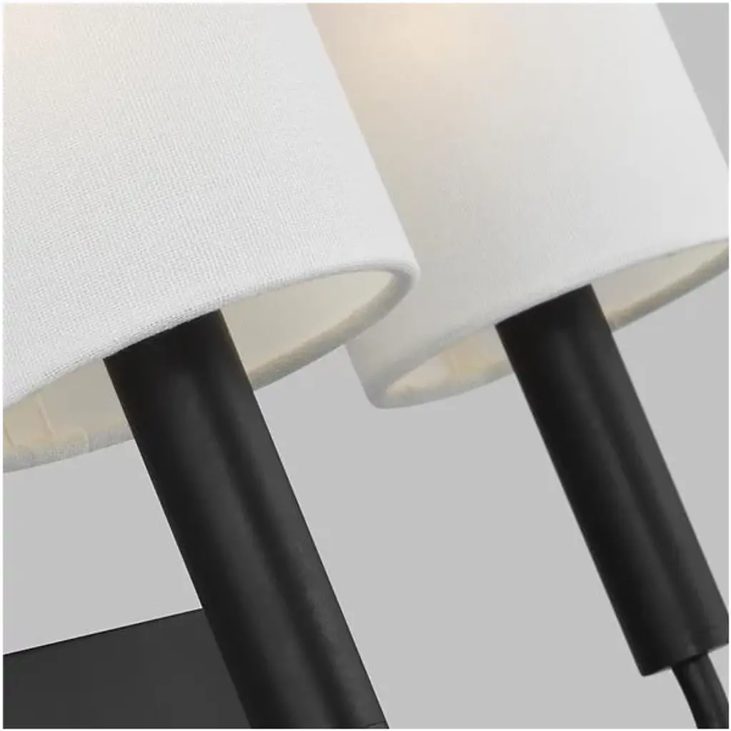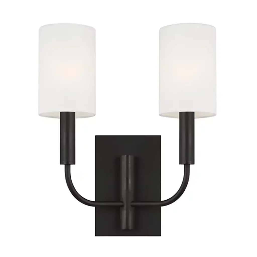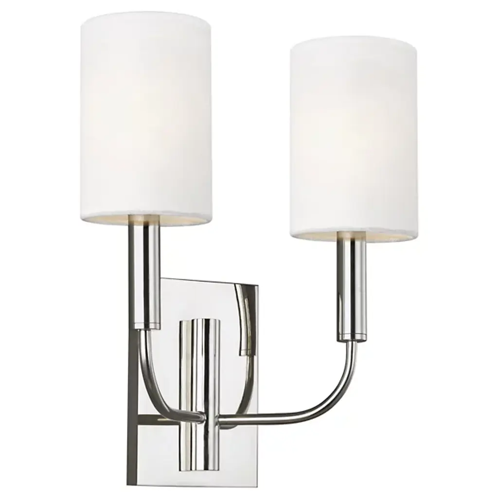 The Brianna 2 - Light Wall Sconce from Visual Comfort Studio, formerly known as ED Ellen DeGeneres, possesses a graceful curved appearance that lends it fluid style that will instantly enhance the modern appeal of whichever room it adorns. Square backplates hold arms that reach out and up to support a housing unit for the bulbs and a shade to surround them. This shade is made from White Linen and diffuses the illumination so each room with one of these products installed in will be filled with an even glow. The body is constructed from steel, which means this contemporary wall sconce will remain strong for many years to come.