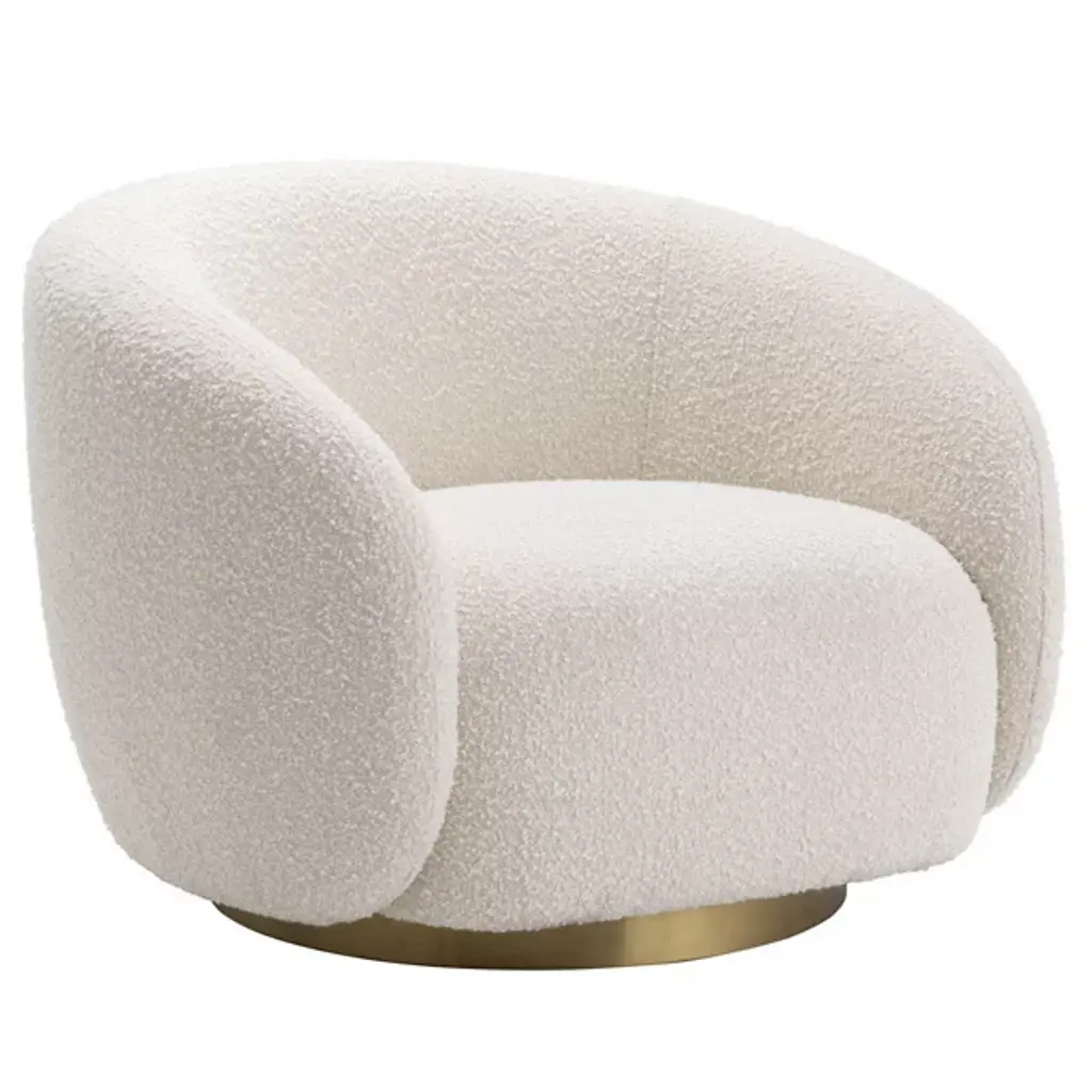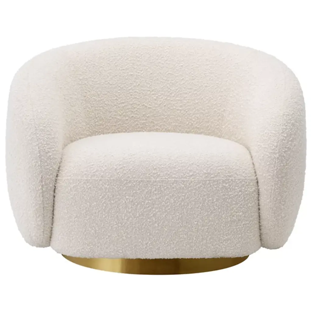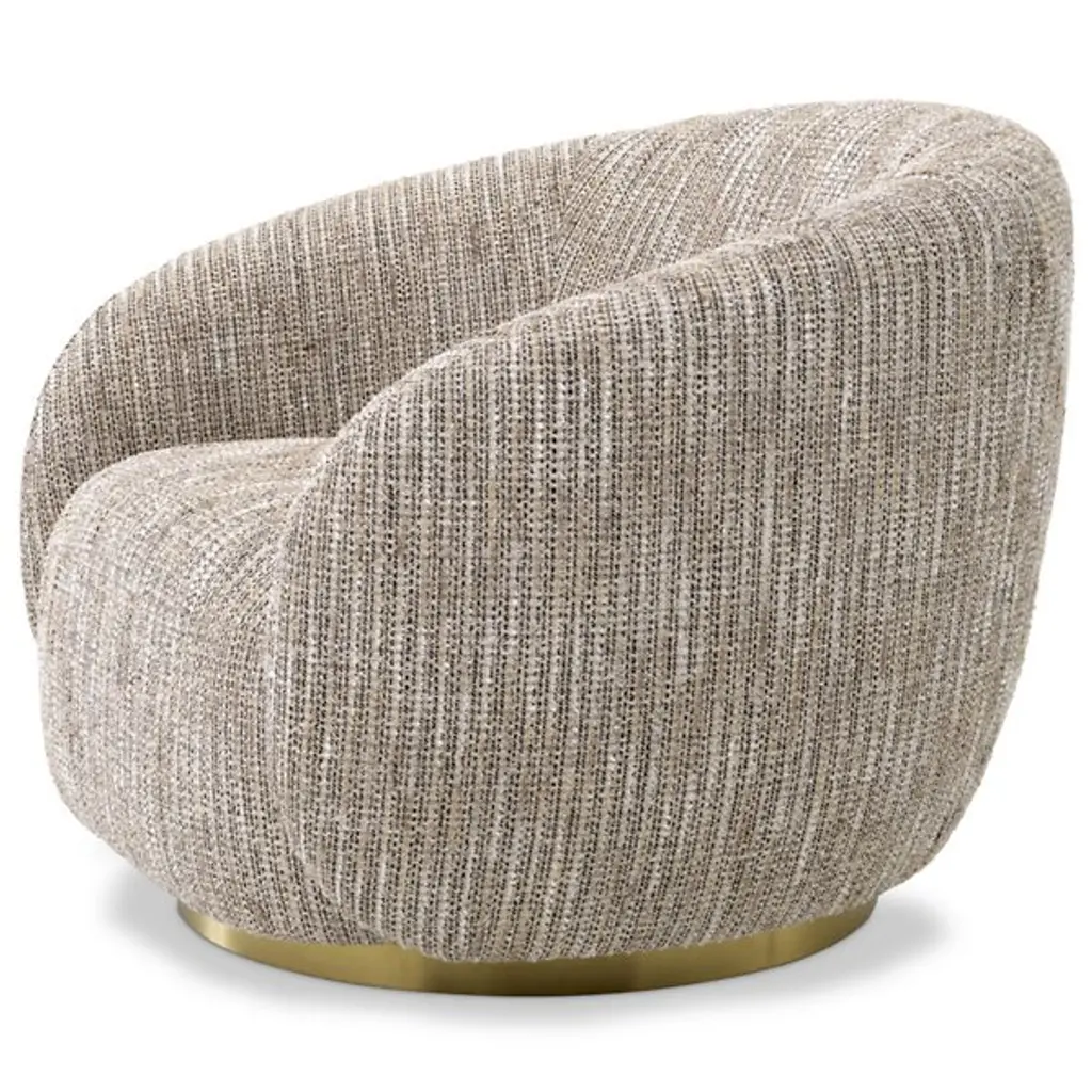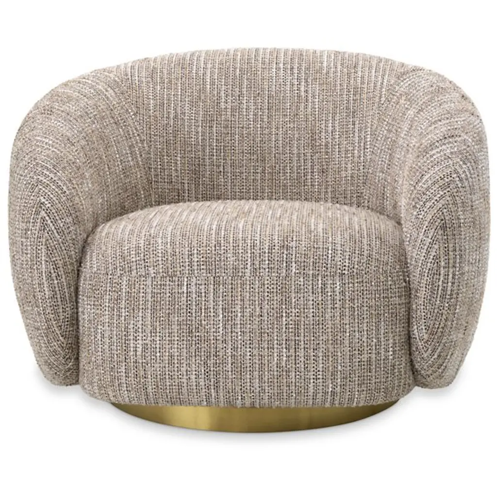 Take a stylish spin in the soft, cloudlike comfort of the Brice Swivel Chair from Eichholtz. Rising from a round steel base, it sends up a soft, round-cornered seat escorted by a flaring, C-shaped back that also functions as an armrest. The polyurethane foam-filled seat and back are surfaced with a fuzzy, polyester-acrylic blend, ensconcing the sitter in classic comfort while expressing a retro-modern character to the seat’s surroundings ensconces the sitter.