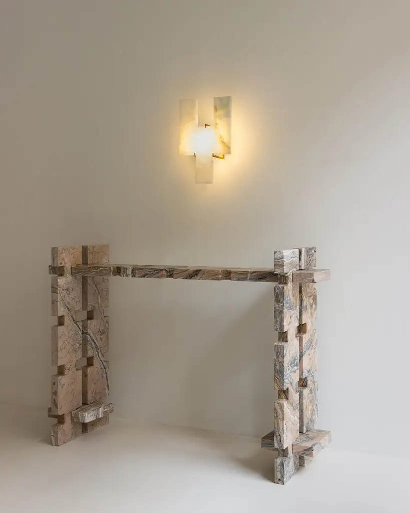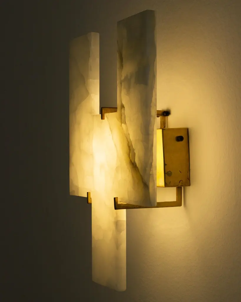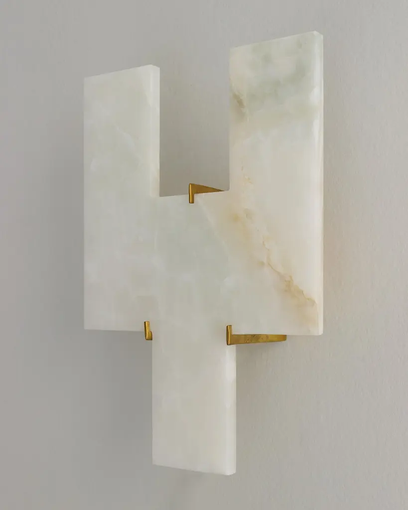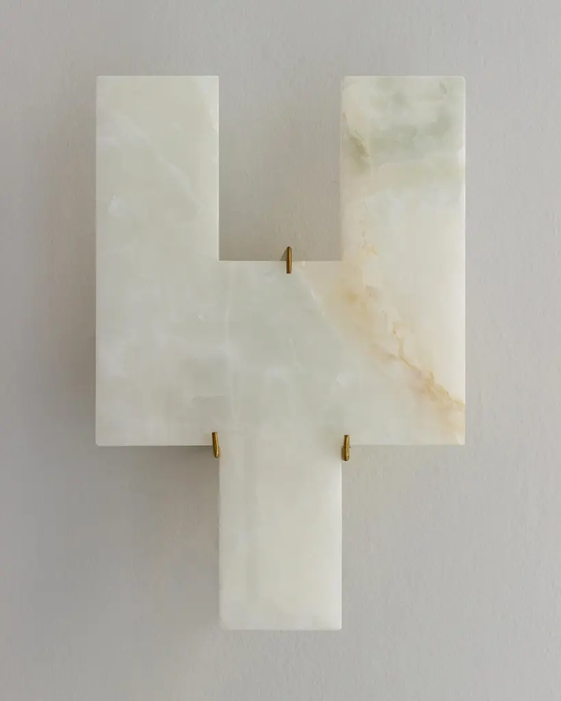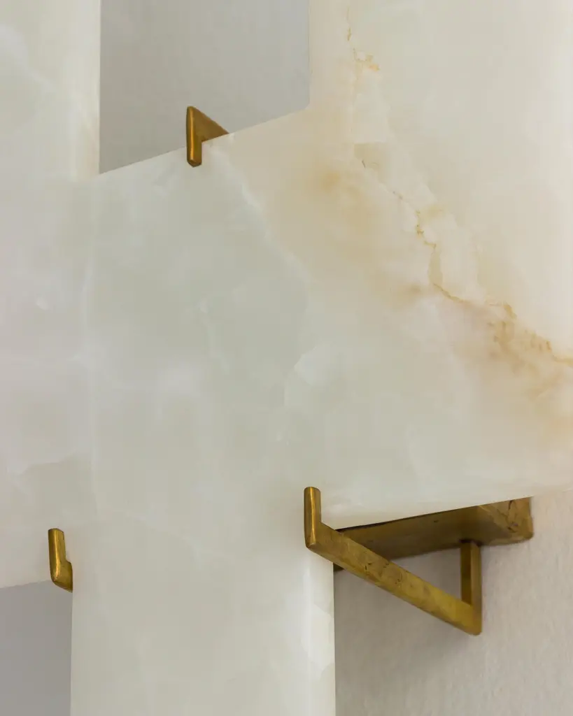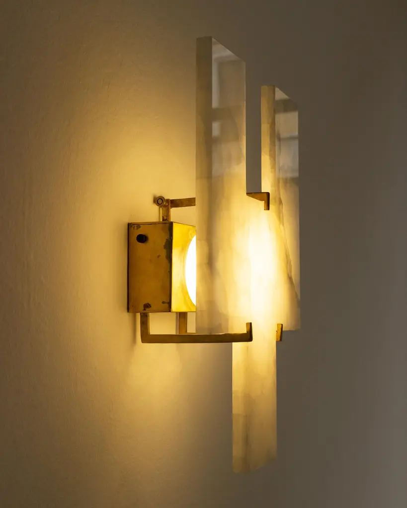 Brick Onyx Wall Lamp by Idaaf ArchitectsDimensions: D 15 x W 30 x H 45 cm.Materials: Onyx and brass.‘Brick’ is the first attempt by Idaaf Architects workshop to create a new building material. White the process of selecting its textures is at the initial stage and the research process is ongoing, we used it's shape to create various decorative elements for the interior.All our lamps can be wired according to each country. If sold to the USA it will be wired for the USA for instance. Please contact us.Born and based in Tbilisi, Nana Zaalishvili completed her Master’s degree in civil architecture at Tbilisi State Academy of Arts. In 2016 she founded studio Idaaf Architects. Since its foundation, the studio has worked on multidisciplinary projects of different types and scale in Georgia and elsewhere. Alongside work on architectural and interior design projects, the sculptural furniture is an important part of the work of the studio. Nana'sapproach is shaped by Tbilisi's eclectic architecture and its hectic urban scene, as well as the stunning natural beauty of the Georgian vernacular architecture.Nana is author of the book: Soviet Bus Stops in Georgia and many architectural/design essays published in various magazines. Nana leads several researches about material studies and Georgian architecture. Information about her completed and ongoing projects can be found in her website.Idaaf Architects was established in Tbilisi in 2016 and is led by the architect Nana Zaalishvili. Studio works on multidisciplinary principles combining Architecture, Interior Design and Furniture, as well as Research and Material Studies. Each project is the results from the deep cultural, geographical and site research with the aim of creating timeless yet modern architecture and design in Georgia and abroad.