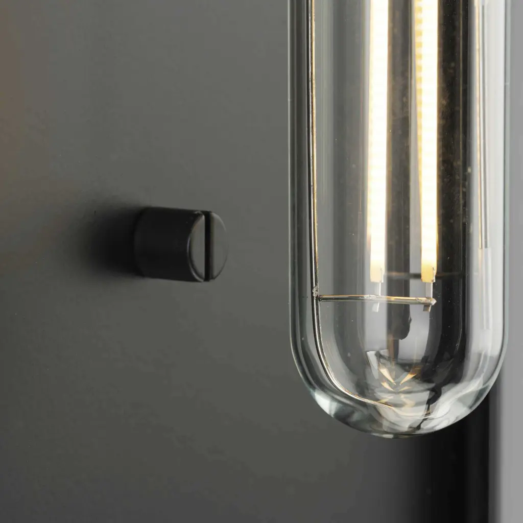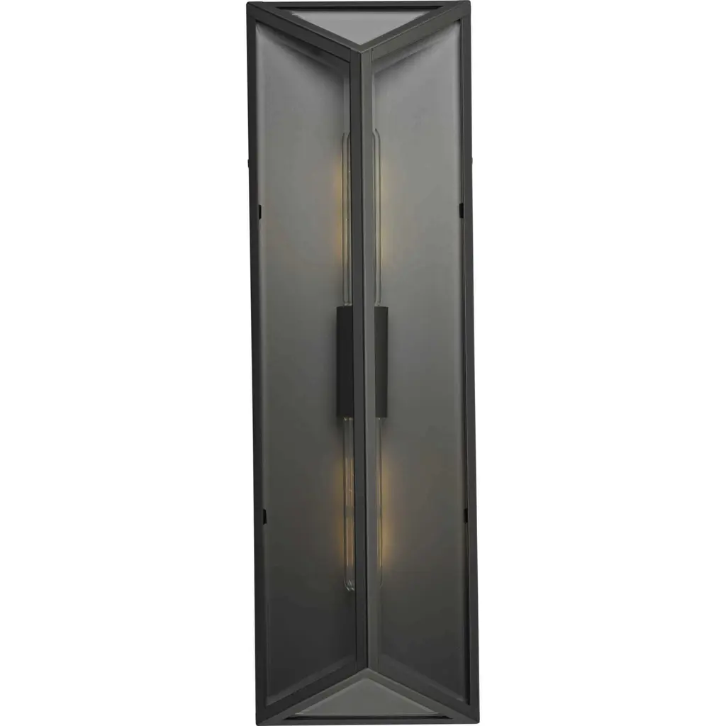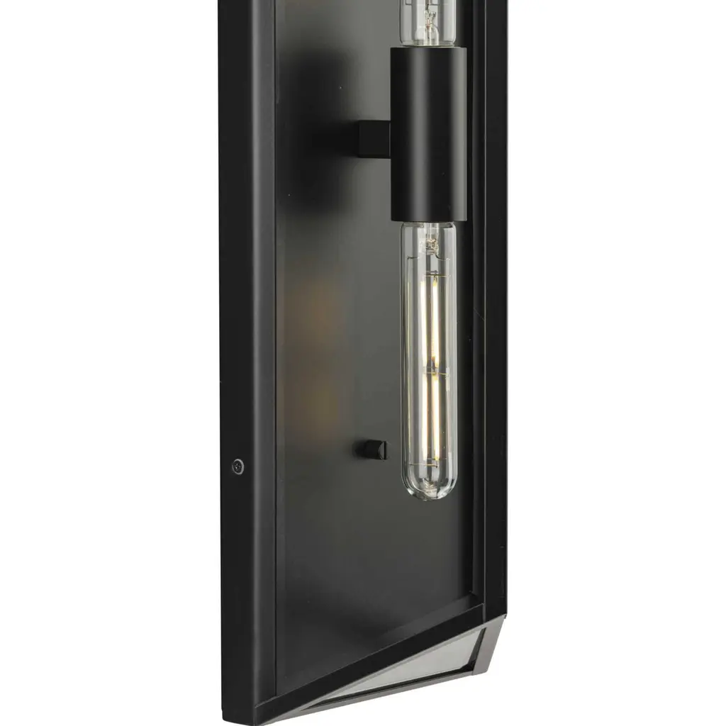 The Bristol Large Outdoor Wall Light is a synthesis of vintage and modern styling. The geometric design is composed of angular clear glass elements that perfectly frame the vertical lights.Its unique frame is finished in crisp matte black. A soft glow emanates from clear beveled glass panels.