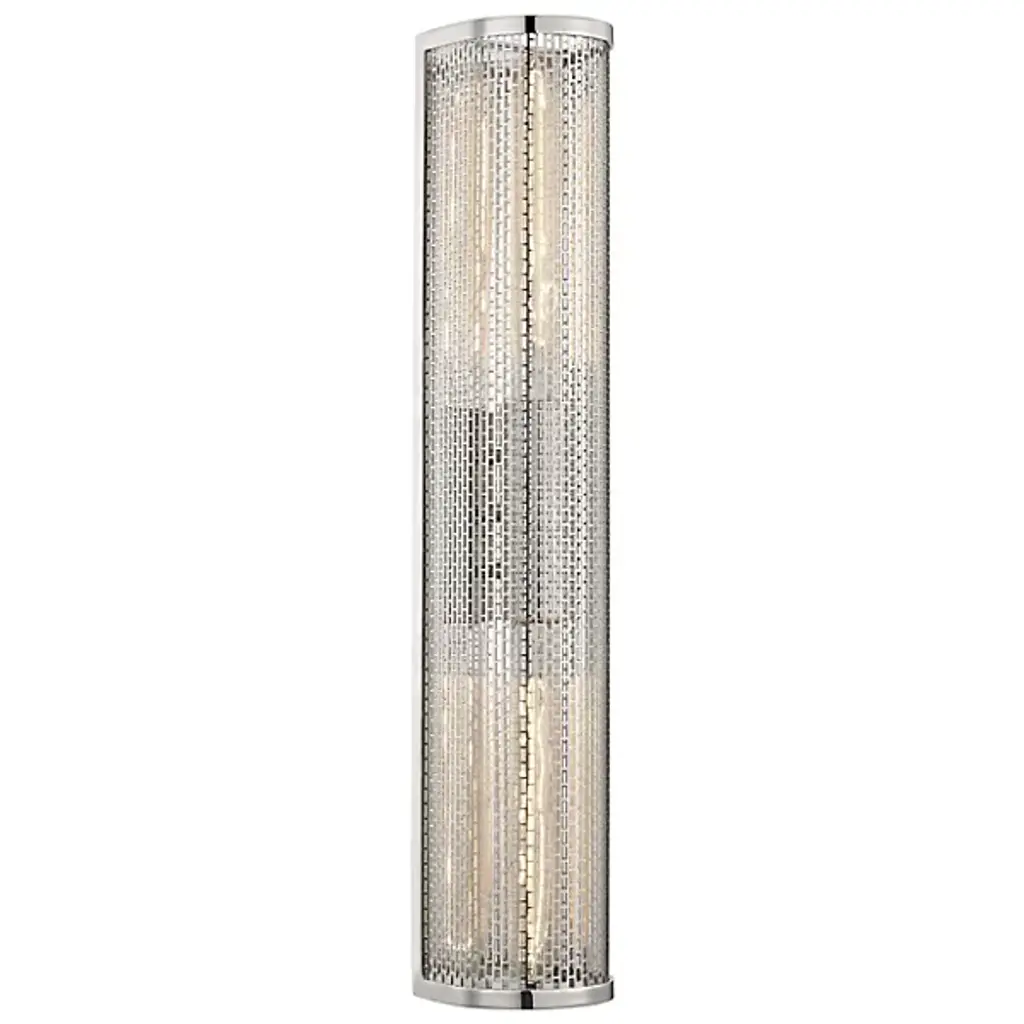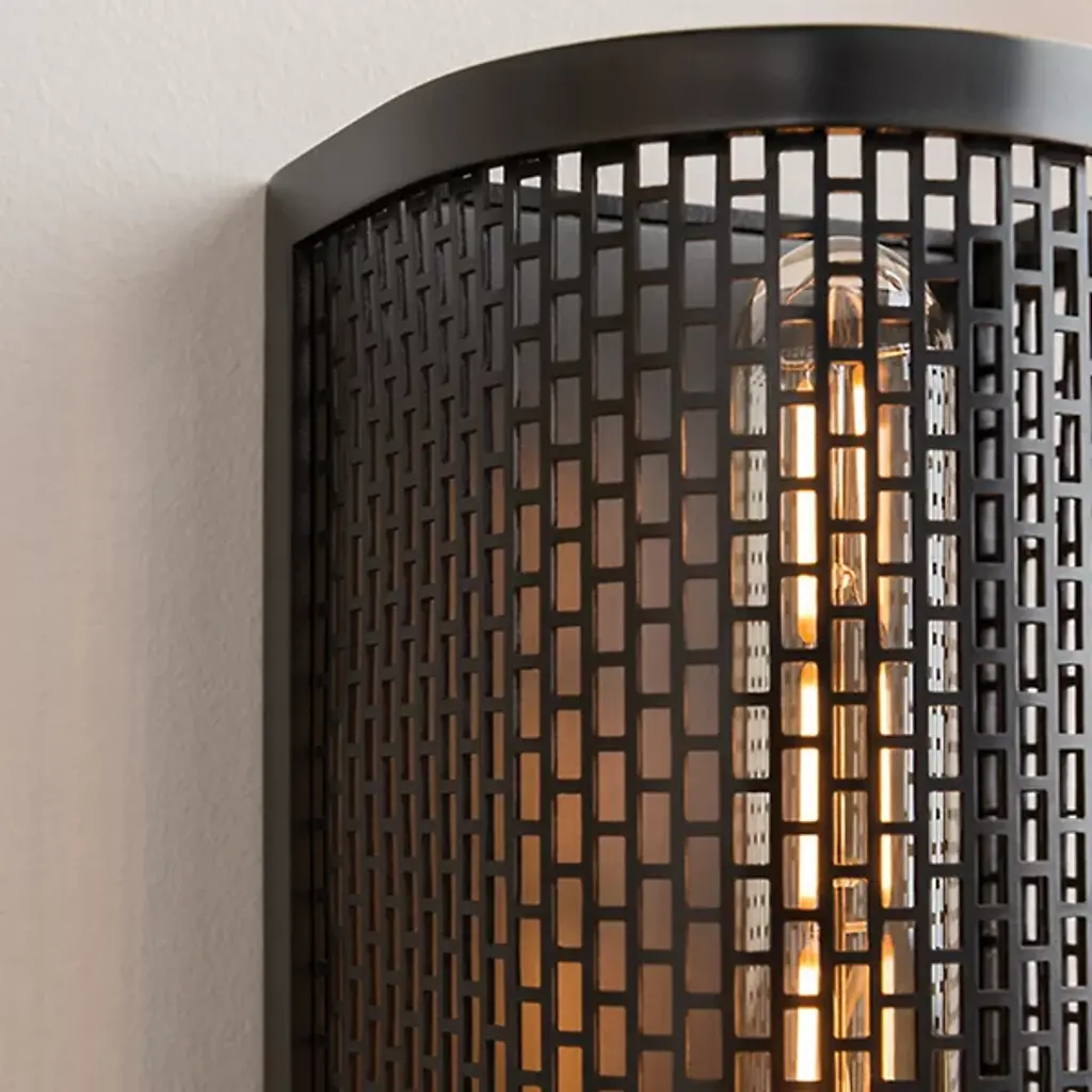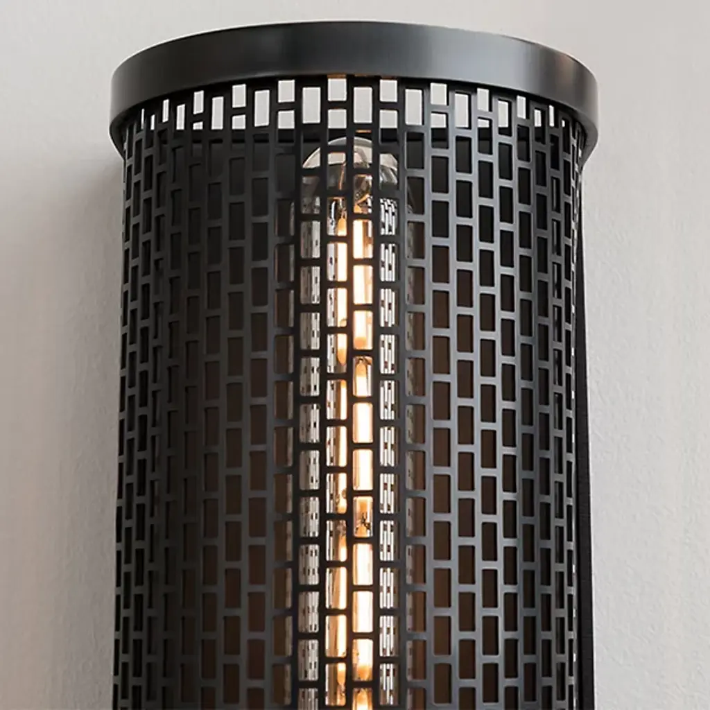 The Britt 2-Light Wall Sconce by Mitzi brings subdued lighting to your contemporary living spaces. With a modern twist on Moroccan metalwork luminaires, this sconce showcases a mesh-like cylinder shade with open ends for unique light and shadow play. A central socket holds 2 T10 bulbs and the wall light installs vertically or horizontally for a customized look in a foyer, kitchen or living room.