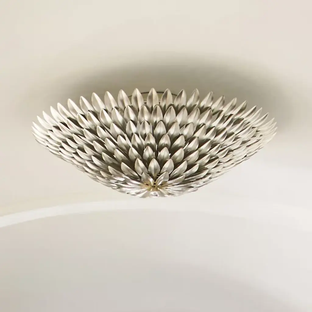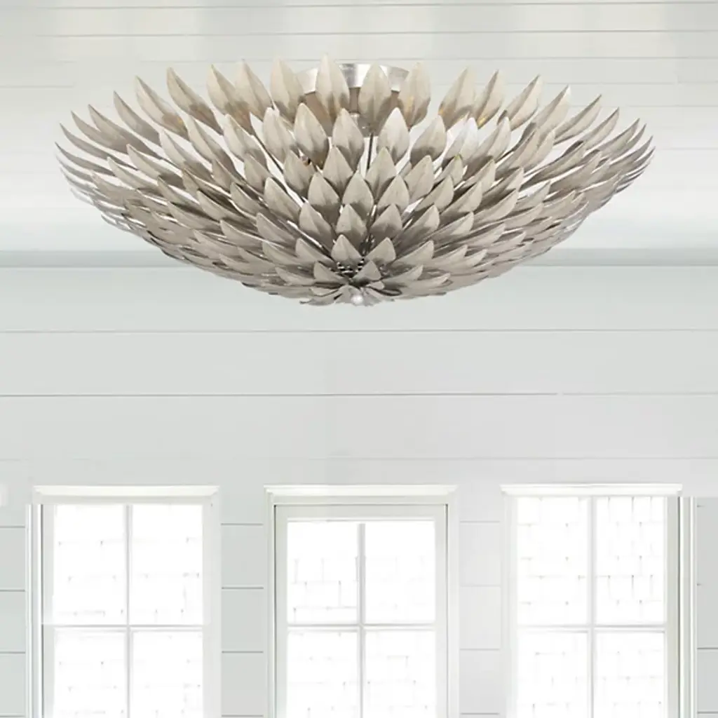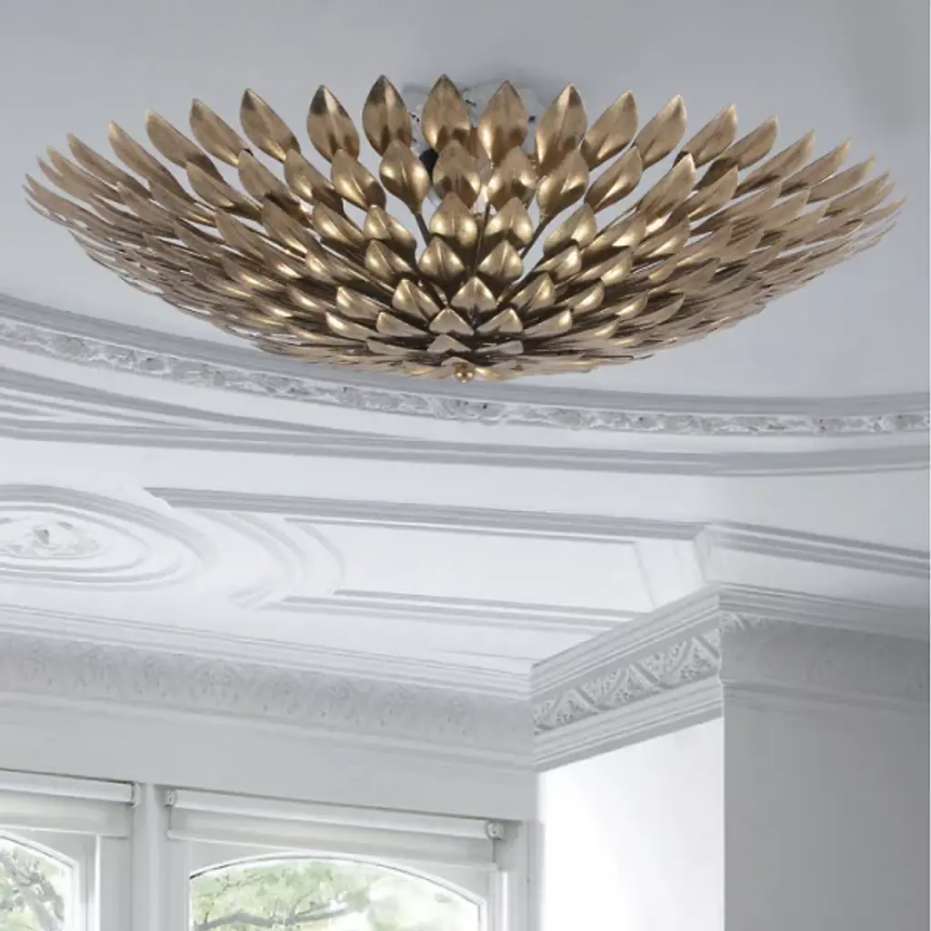 The Crystorama Broche Large Wall Sconce/Flushmount takes its inspiration from an actual flea market find in France. An assembly of hand painted Wrought Iron leaves combine to create a simple yet elegant form. The delicate leaves are completed with a lustrous metal foil application, this fixture is finished off with a decorative flower for a little visual interest.