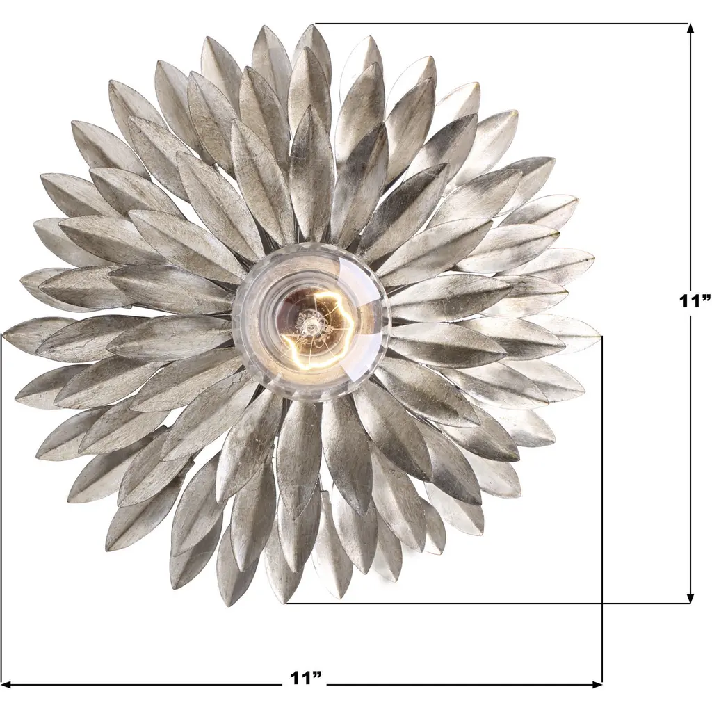 Layers of individual wrought iron leaves deliver a stunning, unique, and functional light. The tailored elegance of the shimmering metallic florals is perfect for a transitional home though versatile enough to be incorporated into any modern design. While ideal for a bedroom, living area, or kitchen, it can be used anywhere you want to add a bit of glam.