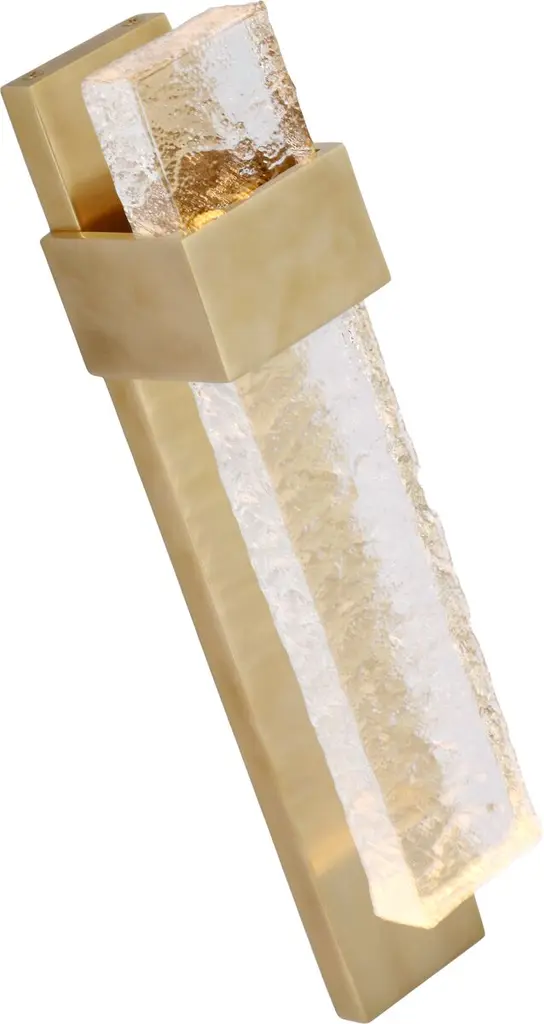 Crafted of art glass, this sconce's rectangular shade looks as if it were hewn from a block of ice. The luminous brass frame adds timeless glamour.