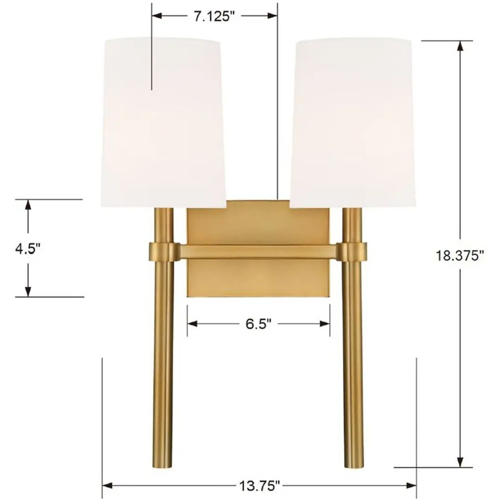 Bromley 2 Light 13.75 Inch Vibrant Gold Sconce Wall Light