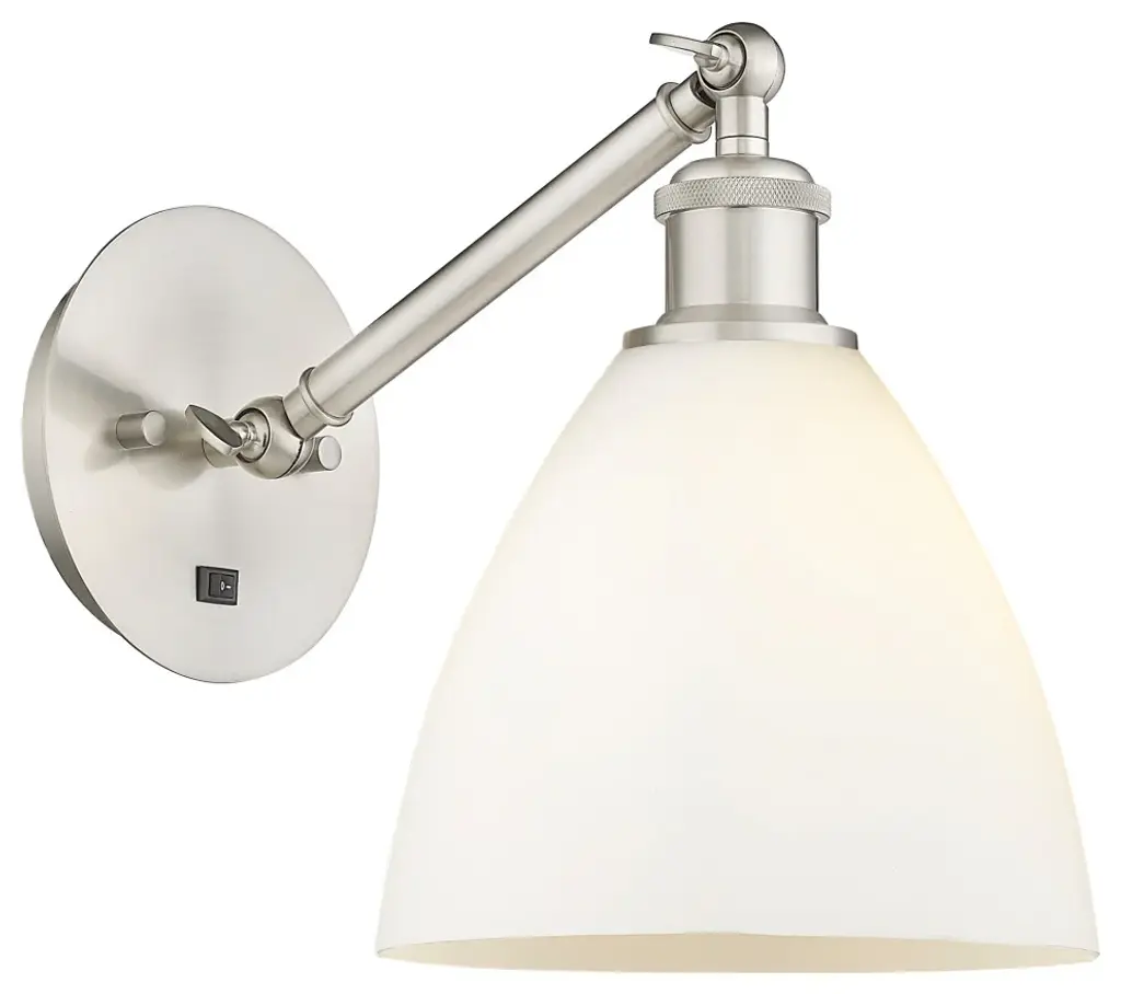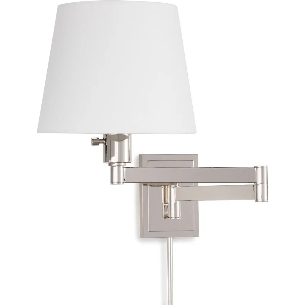 A simple nudge is all it takes to transform the Brompton Swing Arm Wall Sconce by Visual Comfort Signature, formerly known as Visual Comfort, from a stylized accent for your room to a convenient reading light. It’s a Ralph Lauren design bringing a fashion-minded edge in the neatness of its figure. Its side profile shows off the angled arm, which moves from side to side with a slim backplate holding it up. A soft glow melts through the surfaces of the shade while a pleasant down glow melts over your shoulders as you sit next to it.