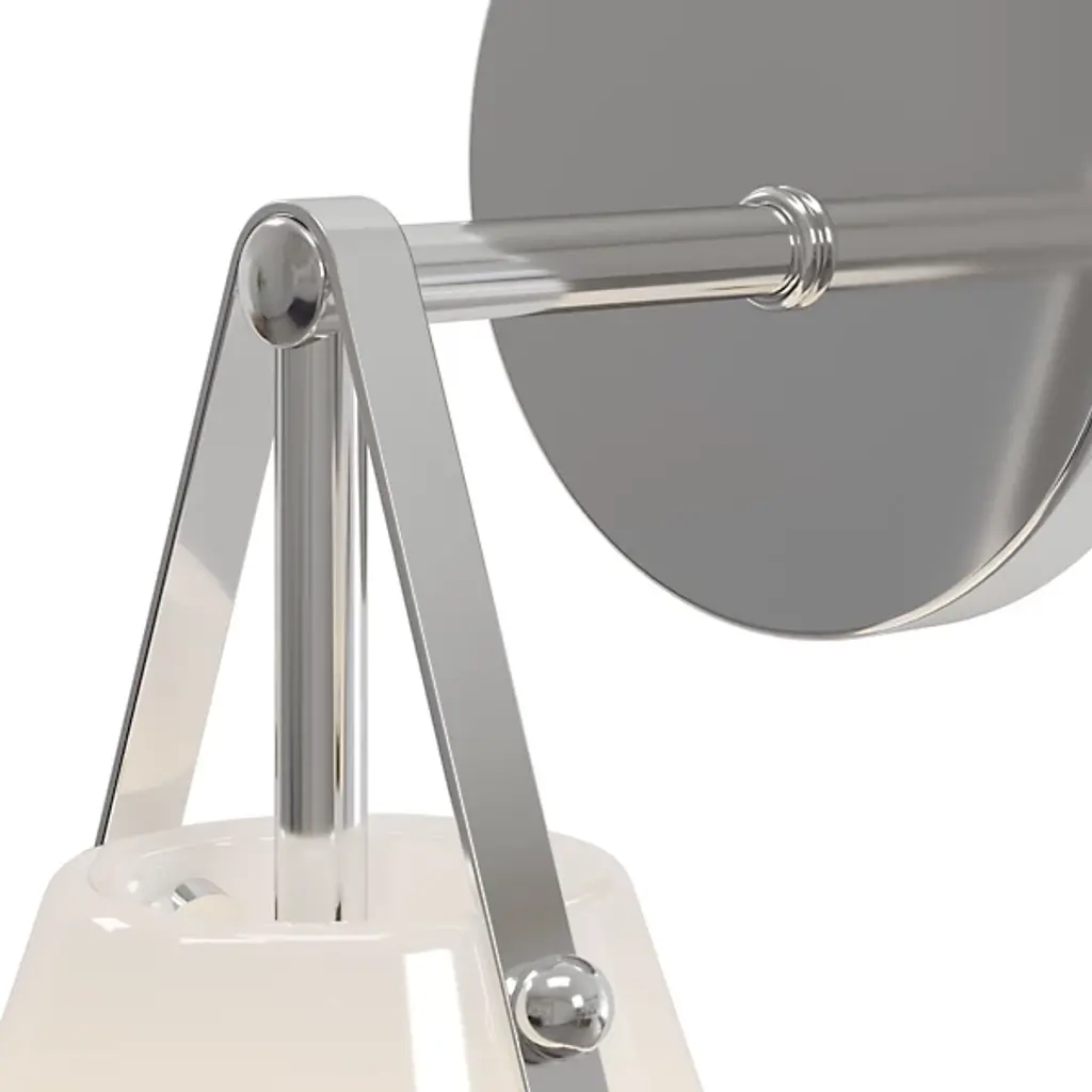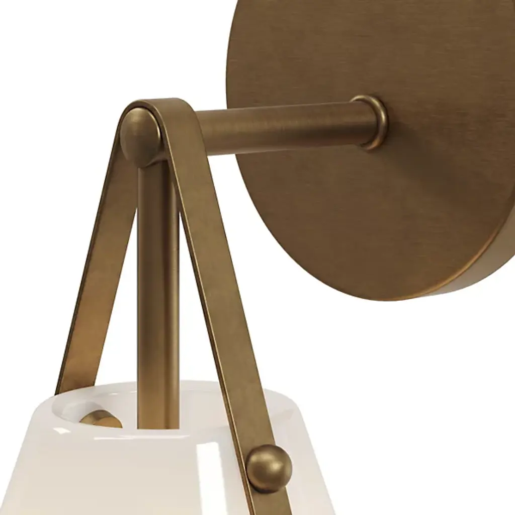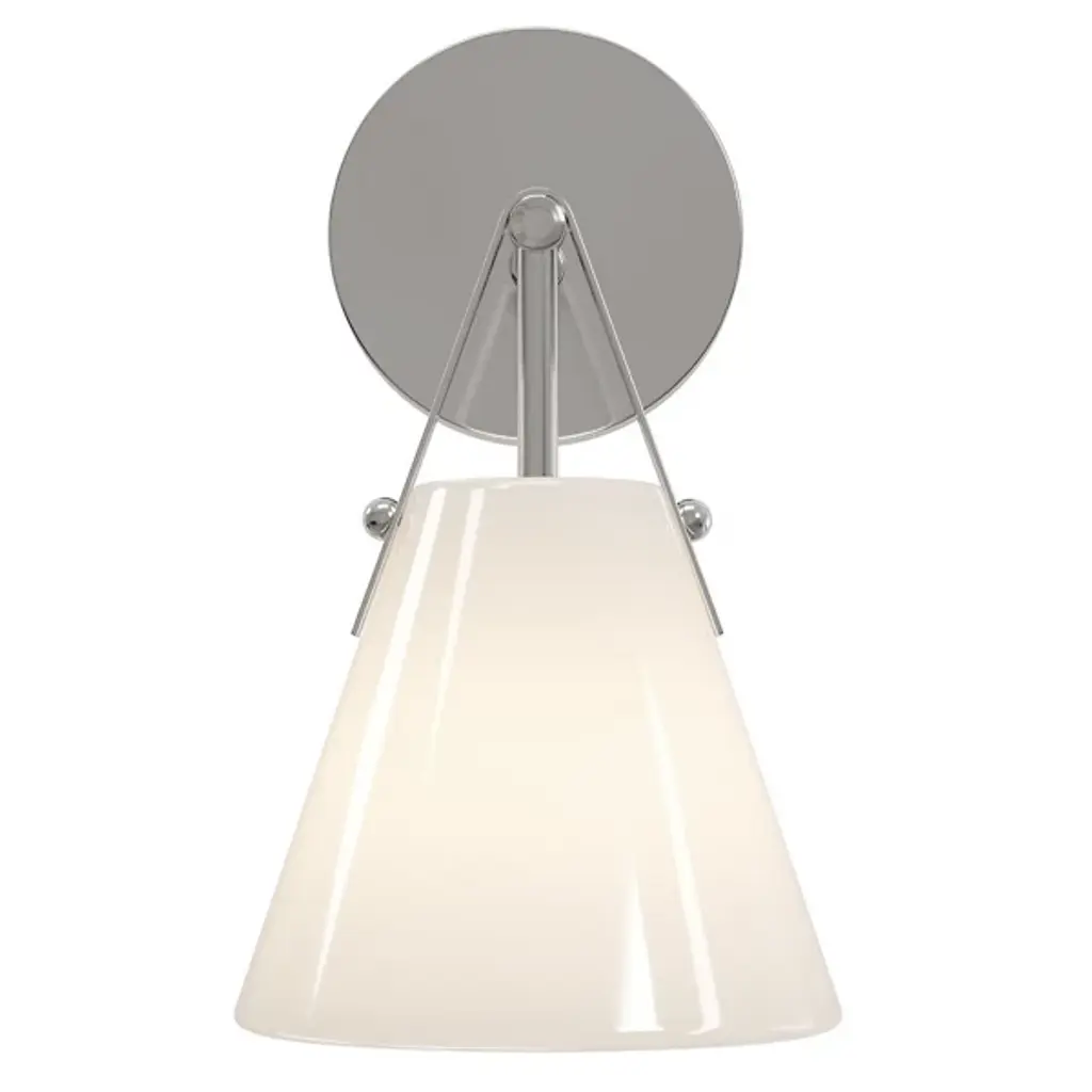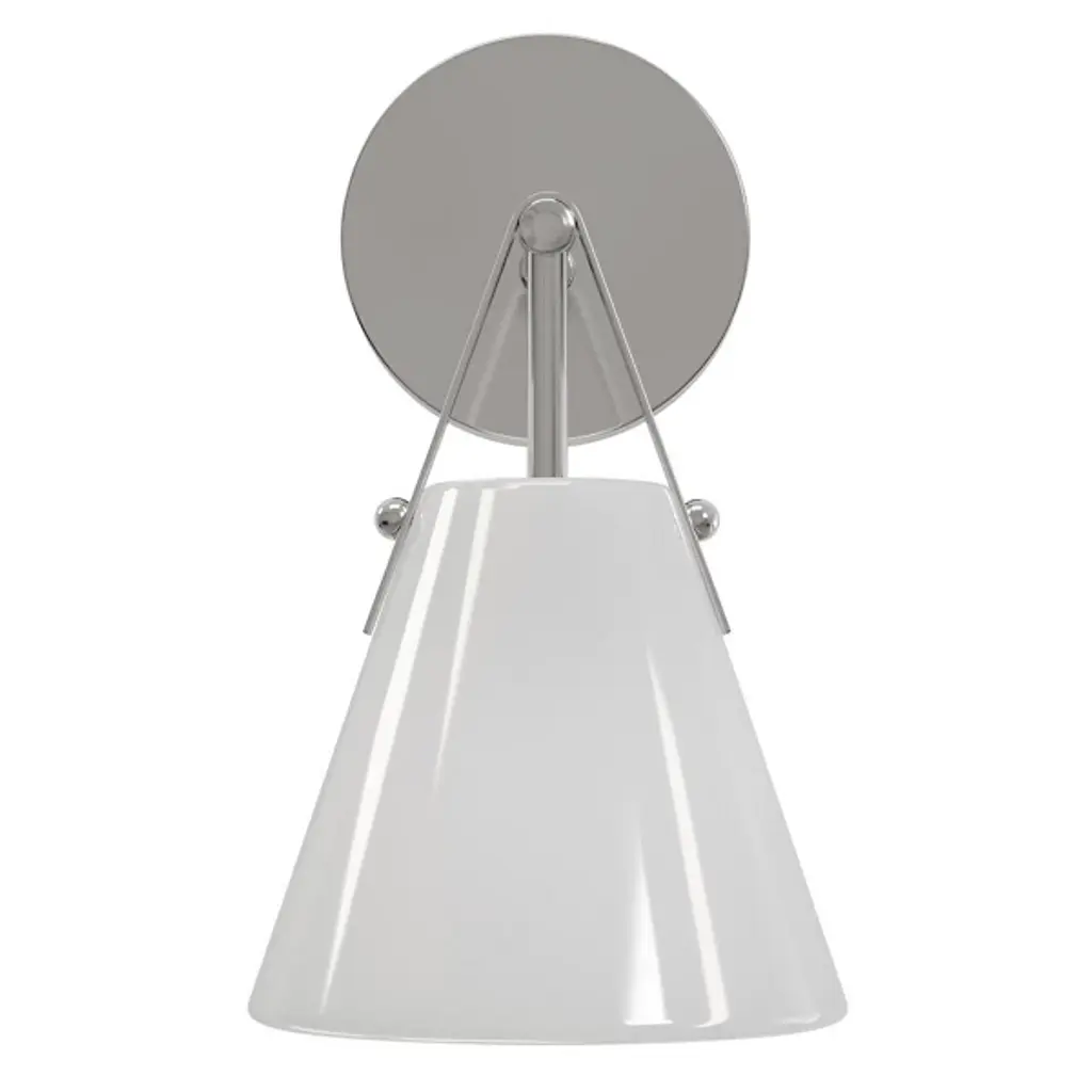 The Bronwen Bath Wall Sconce from Currey & Company draws inspiration from equestrian hardware through its strap detail. A metal band secures the flared glass shade to the circular mounting plate, subtly referencing classic tack elements. The glossy surface of the shade creates a soft glow when lit, while the metal provides visual contrast. With dimmable functionality, this wall sconce works across multiple design aesthetics, from modern farmhouse to transitional spaces. Perfect for bathrooms where both style and function matter, the piece delivers practical lighting while adding character through its unique hardware-inspired design.