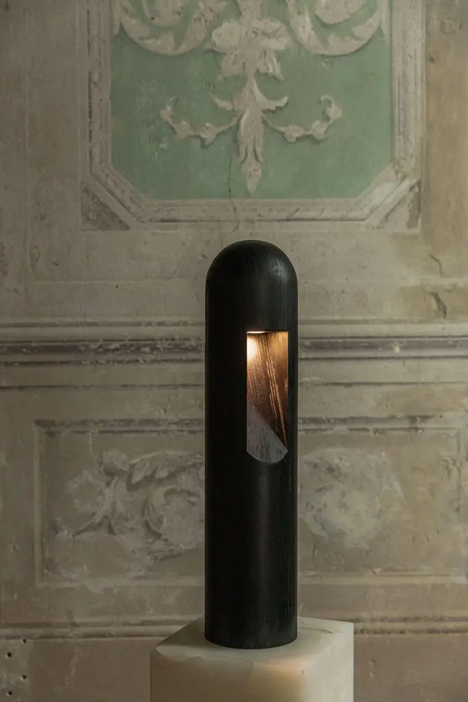 Wall lamp by Rick Owens,2013Dimensions: L 15 x W 15 x H 51 cmMaterials: BronzeWeight: 13 kgNote: led 230vAvailable in black finish or nitrate (dark brown) finish.Rick Owens is a California-born fashion and furniture has developed a unique style that he describes as “luxe minimalism.”Though his designs are simple and spare, Owens thrives on theatricality — producing wildly original runway shows featuring gender-fluid models of all ages and shapes. Inspired by his longtime partner and muse, Michele Lamy, clothes and furniture alike feature dark grays, blacks and browns. Like his frontier forebears, Owens finds his strongest influences in nature — his furniture and housewares have simple, organic shapes, and a few items even feature his distinctly 21st century take on antlers.