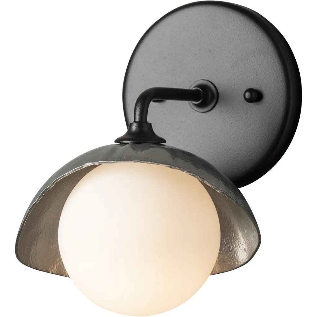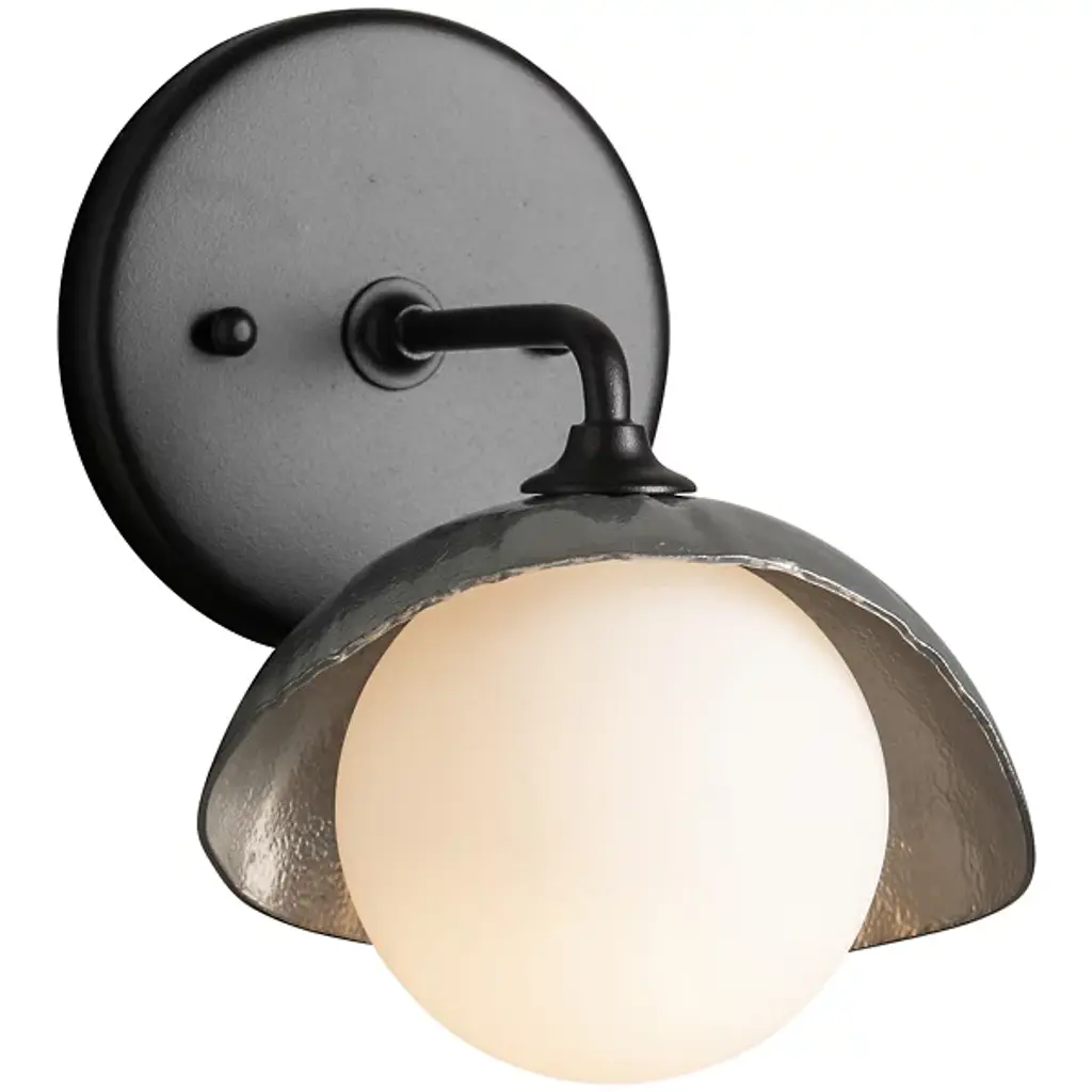 This single shaded Brooklyn wall sconce is the perfect addition to add light to a smaller space on either side of a mirror in a bath environment. The Brooklyn 1-Light Single Shade Bath Sconce's metal shade is forged by Vermont artisans. Available in Black, Oil Rubbed Bronze, Vintage Platinum, Soft Gold, Sterling and Modern Brass.