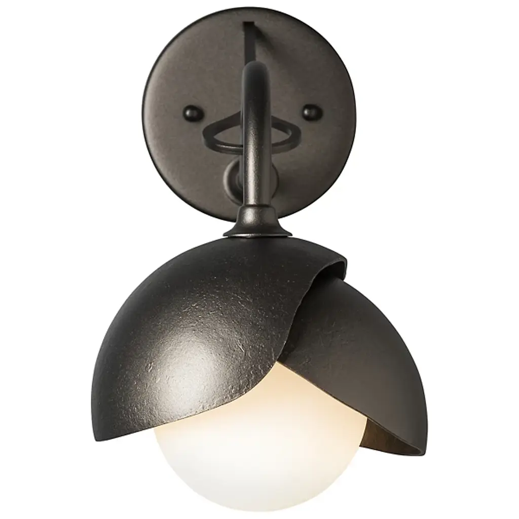 Channel a little whimsy in your life with the Brooklyn 1-Light Double Shade Long-Arm Wall Sconce by Hubbardton Forge. Our artisans took whimsy to the next level, making a double shade the center point of this bathroom wall sconce. The unique, forged-steel double shade sits at the end of a long curved arm, adding depth and illusion as it gently cups an orb globe. Mount this refreshingly beautiful bathroom wall sconce on opposite sides of your vanity for vibrant illumination.