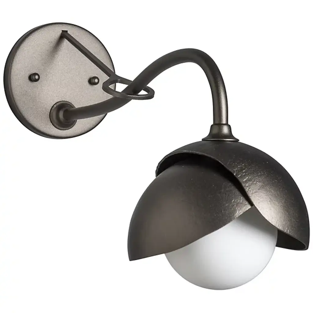 Channel a little whimsy in your life with the Brooklyn 1-Light Double Shade Long-Arm Wall Sconce by Hubbardton Forge. Our artisans took whimsy to the next level, making a double shade the center point of this bathroom wall sconce. The unique, forged-steel double shade sits at the end of a long curved arm, adding depth and illusion as it gently cups an orb globe. Mount this refreshingly beautiful bathroom wall sconce on opposite sides of your vanity for vibrant illumination.