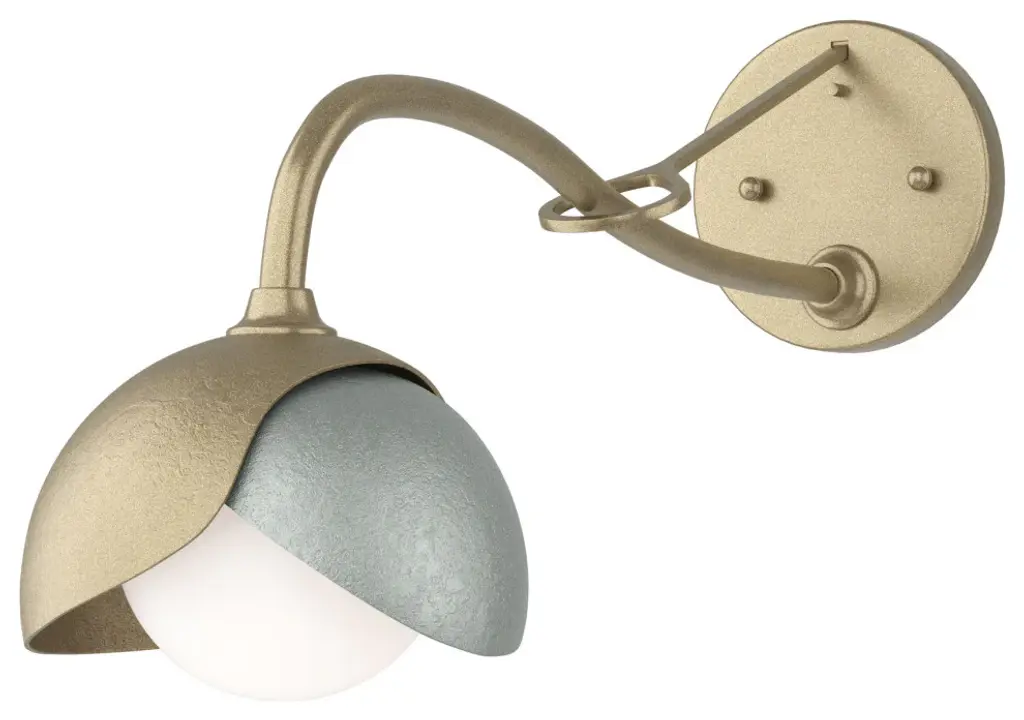 With a gracefully curved, extended arm with greater reach for those situations where needed, the Brooklyn 1-Light Double Shade Long-Arm Sconce is the perfect solution. Shades may be crafted in a two-tone option with contrasting finishes, if desired. The handcrafted nature of the metal is evident by the texturing from the heat of the fires of the forge. Handmade by Vermont artisans. Available in Black, Oil Rubbed Bronze, Vintage Platinum, Soft Gold, Sterling and Modern Brass.Requires 1 x 60 watt G-9 G9 Incandescent bulb(s)(Not Included).All Hubbardton Forge products are hand-crafted to last one at a time in Vermont and backed by a Lifetime Limited Warranty.
