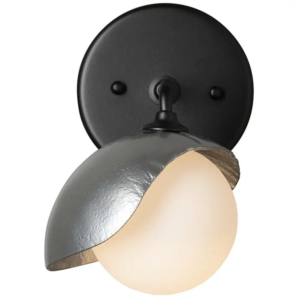 Reimagine how beautiful your space can truly be with the Brooklyn 1-Light Single Shade Bathroom Wall Sconce by Hubbardton Forge. Our artisans took curvature to the next level, making a single lid-like shade the center point of this bathroom wall sconce. The unique, forged-steel shade sits at the end of a short curved rod, adding depth and illusion as a large orb globe sits in the middle of the curved metal shade. Mount this beautiful wall light fixture in your bathroom, hallway, or pantry closet.