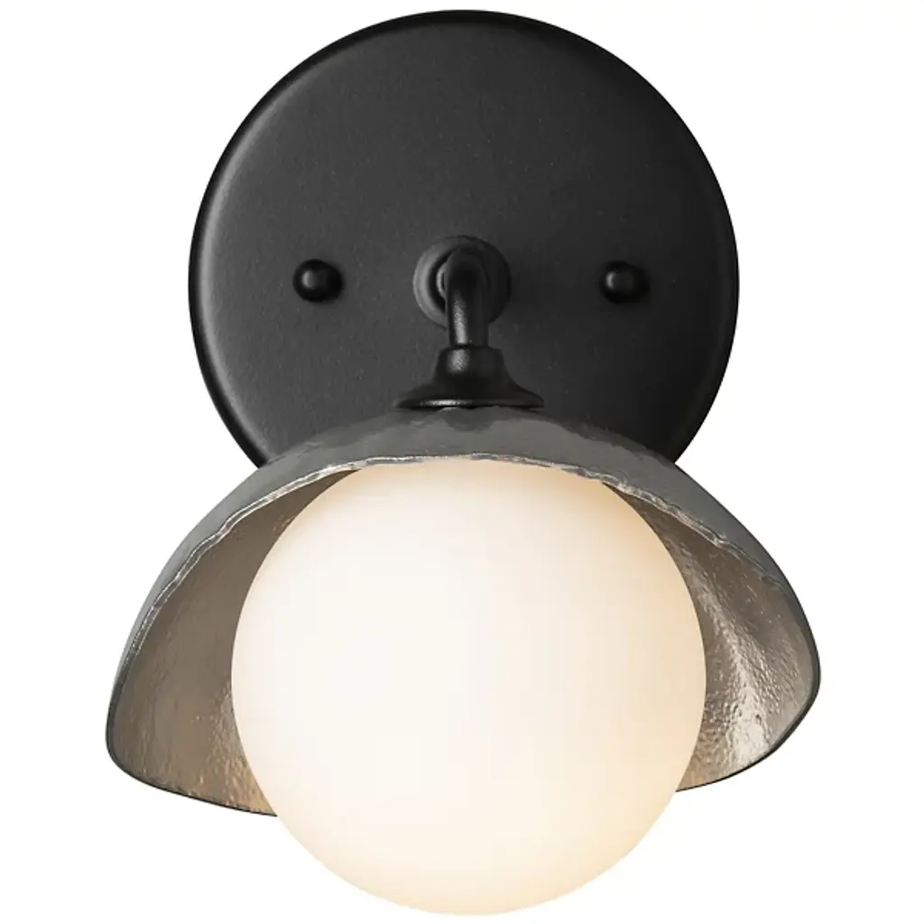 Reimagine how beautiful your space can truly be with the Brooklyn 1-Light Single Shade Bathroom Wall Sconce by Hubbardton Forge. Our artisans took curvature to the next level, making a single lid-like shade the center point of this bathroom wall sconce. The unique, forged-steel shade sits at the end of a short curved rod, adding depth and illusion as a large orb globe sits in the middle of the curved metal shade. Mount this beautiful wall light fixture in your bathroom, hallway, or pantry closet.