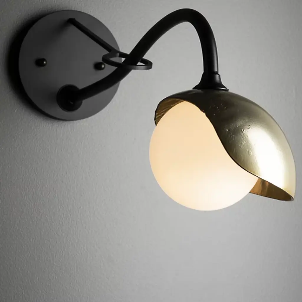 Channel the power of curved elegance with the Brooklyn 1-Light Single Shade Long-Arm Wall Sconce by Hubbardton Forge. Our artisans took curvature to the next level, making a single lid-like shade the center point of this bathroom wall sconce. The unique, forged-steel shade sits at the end of a long curved rod, adding depth and illusion as a sizeable orb globe sits in the middle of the curved metal shade. Mount this beautiful wall sconce in your bathroom, hallway, or office.