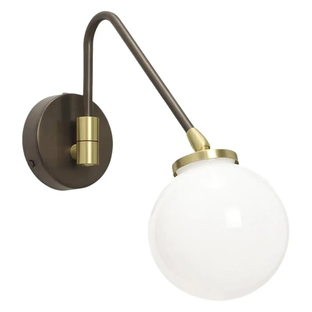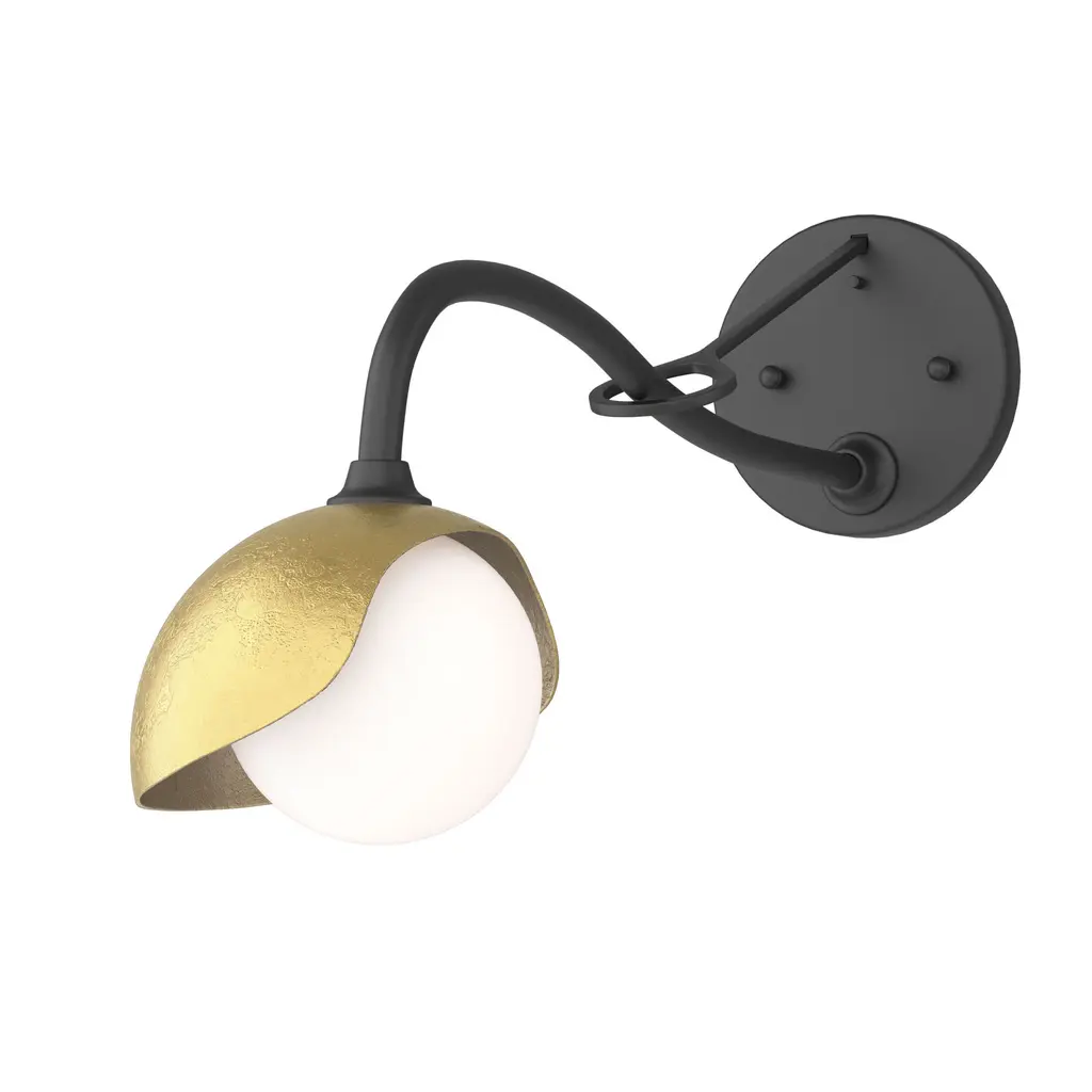 Channel the power of curved elegance with the Brooklyn 1-Light Single Shade Long-Arm Wall Sconce by Hubbardton Forge. Our artisans took curvature to the next level, making a single lid-like shade the center point of this bathroom wall sconce. The unique, forged-steel shade sits at the end of a long curved rod, adding depth and illusion as a sizeable orb globe sits in the middle of the curved metal shade. Mount this beautiful wall sconce in your bathroom, hallway, or office.
