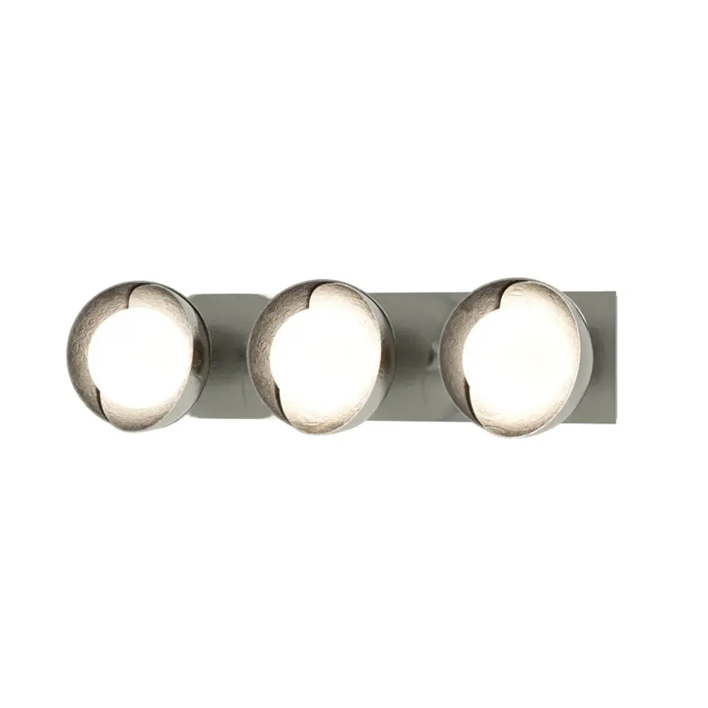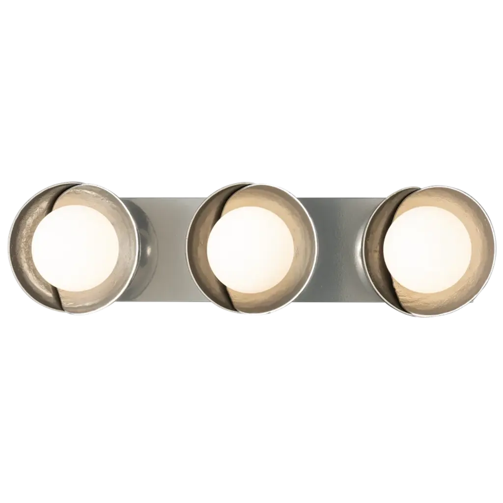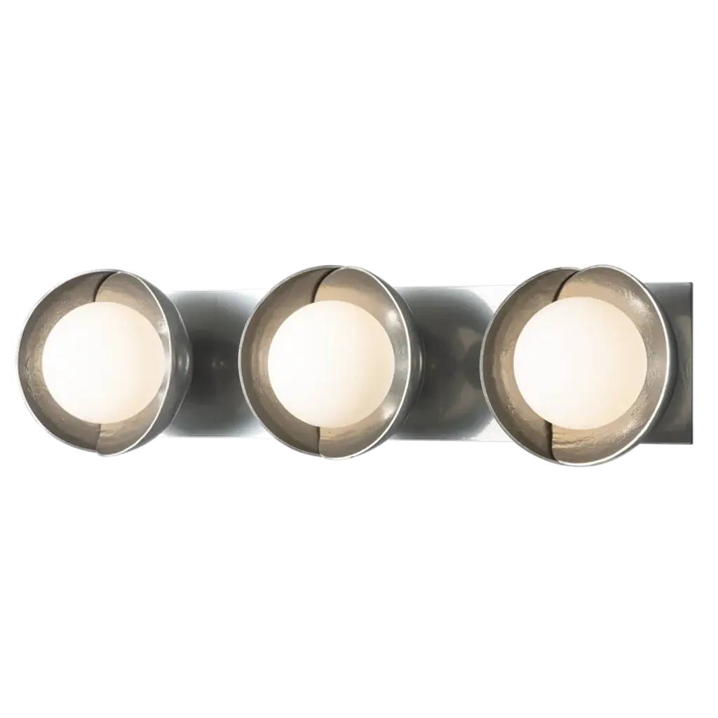 A linear wall mount that can be positioned either horizontally or vertically, this Brooklyn 3-light double shade is ideal above or on either side of a mirror in a powder room or bath. The shades are hand-forged and shaped by Vermont makers and can be adjusted for position. A two-tone option is offered for shade finishes, should contrasting colors be desired. All Hubbardton Forge products are hand-crafted to last one at a time in Vermont.