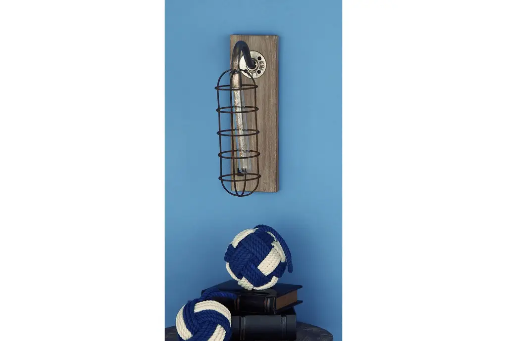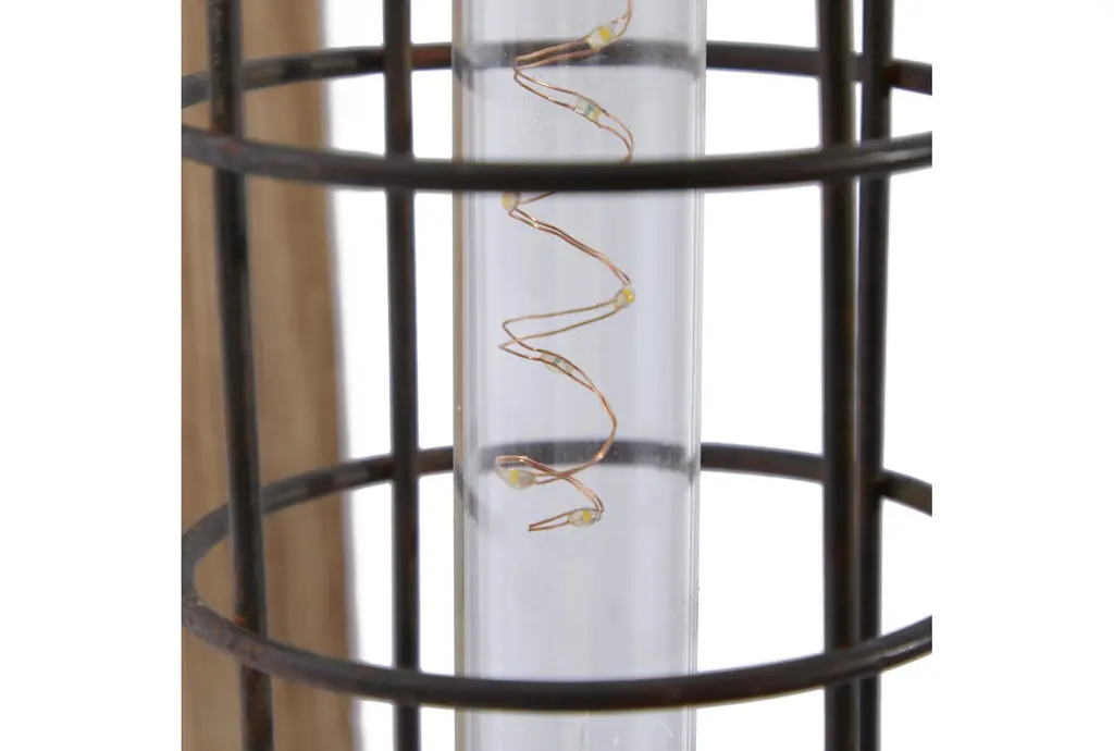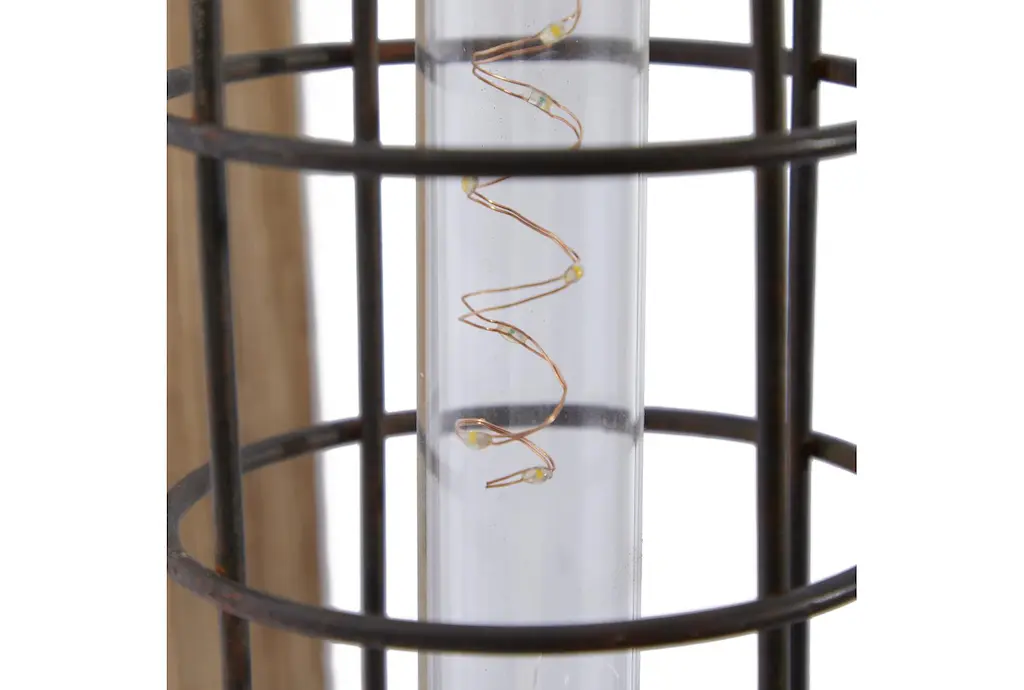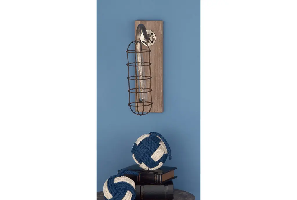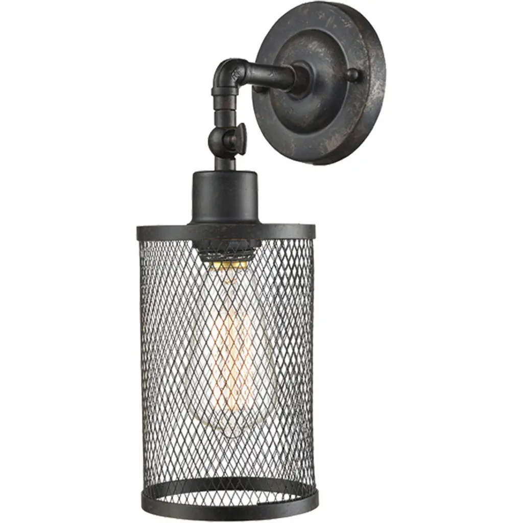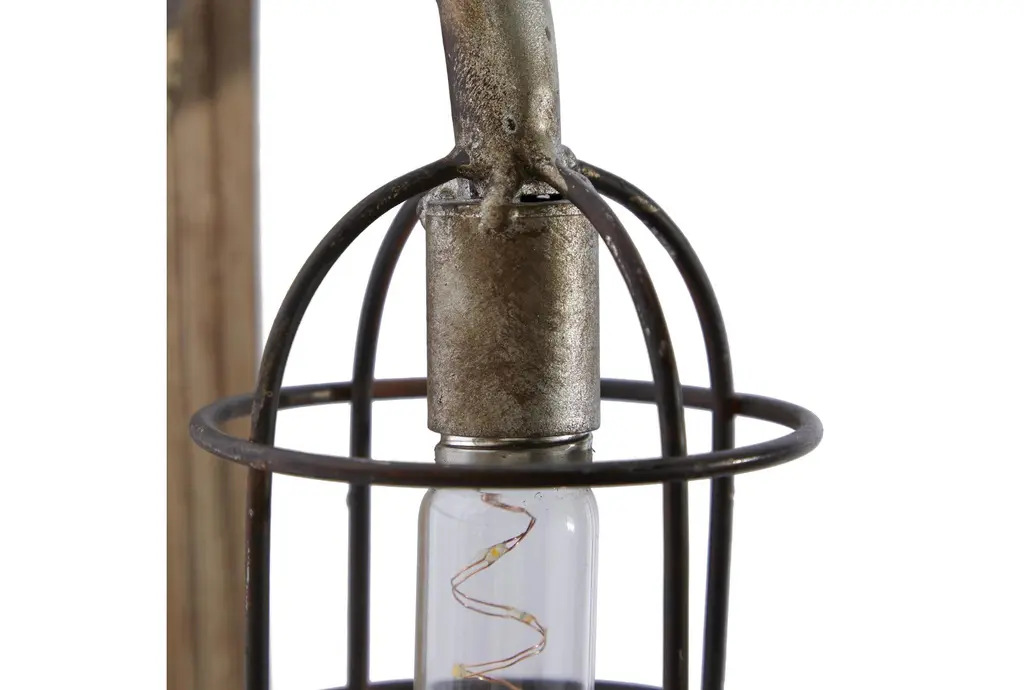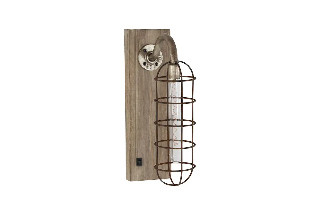 This trendy LED battery wall sconce is a great addition for entryways, living rooms, hallways, kitchens, and bedrooms. Requires 2 AA batteries (not included); battery box is on the back. Includes 1 0.05W Included LED bulb. This item ships in 1 carton. Iron accent lamp makes a great gift for any occasion. Can be hung vertically using the sawtooths on the back; nails and screws not included. Suitable for indoor use only. This item ships fully assembled in one piece. Includes a on/off switch. This is a single brown colored table lamp. Industrial style.