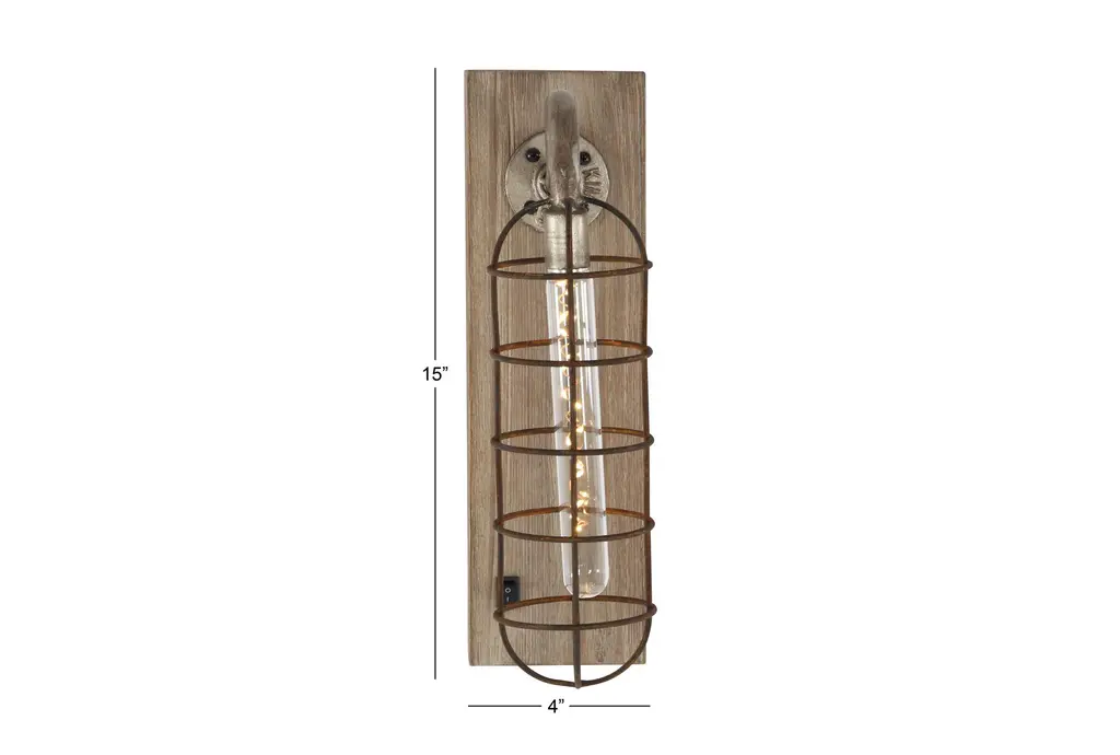 Brown Wood | Bronze Metal Caged Rectangle Led Light Wall Sconce | Led Lights